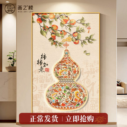 福禄葫芦玄关装饰画高端大气壁画柿柿如意寓意好入户门正对墙挂画