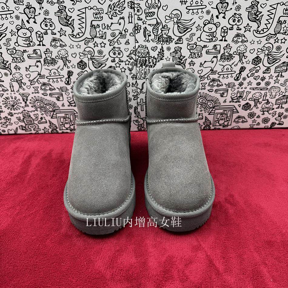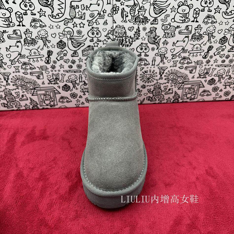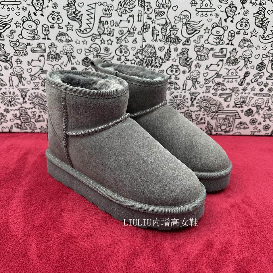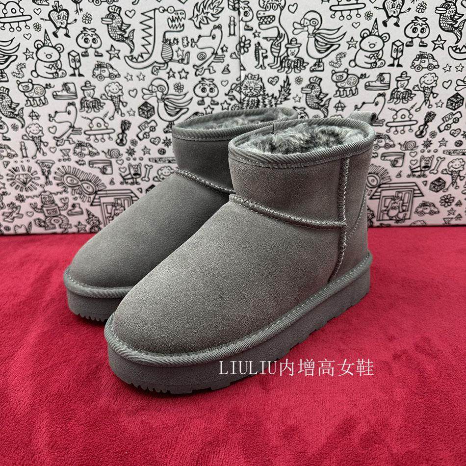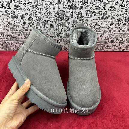 周冬雨同款厚底隐形内增高7cm短筒低帮加厚灰色牛皮保暖雪地女靴