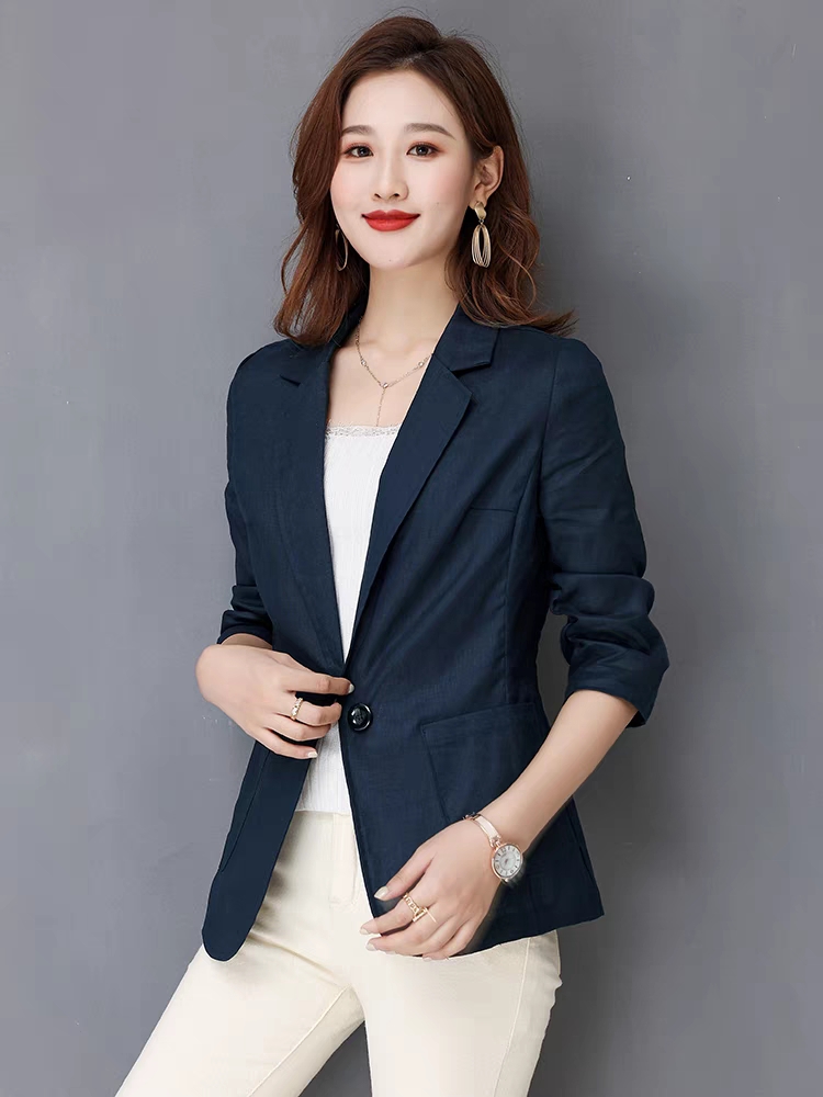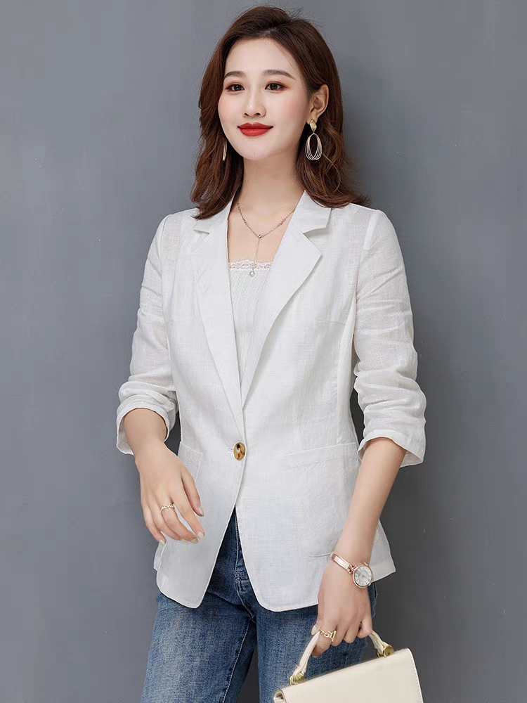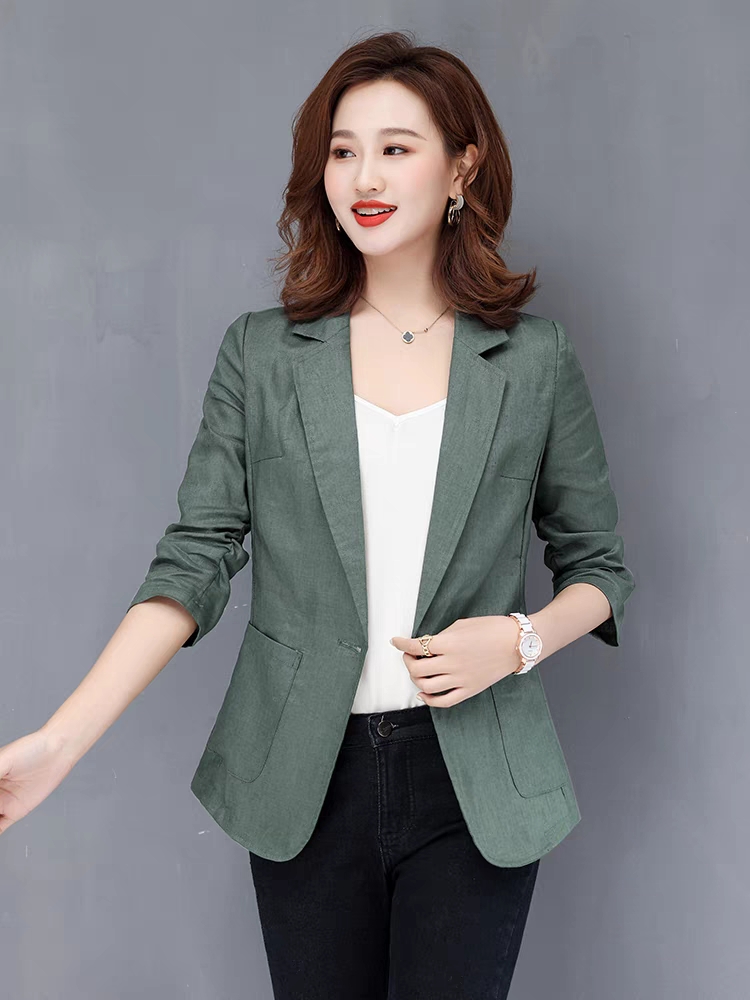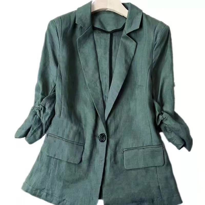 2025早春棉麻新款文艺薄款修身七分袖小西服休闲春秋亚麻女士外套
