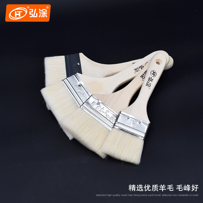 弘涂牌羊毛刷 木柄软毛刷子 不掉毛油漆刷 3寸5寸涂料刷烧烤油刷