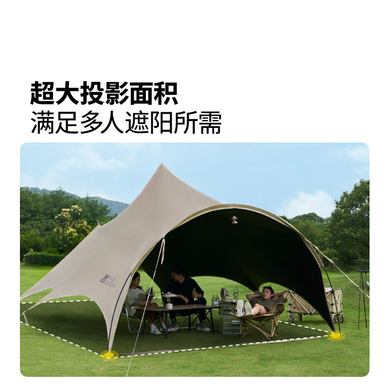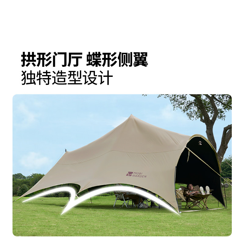牧高笛观庭黑胶天幕户外露营防雨防紫外线大空间遮阳棚蝶形牛津
