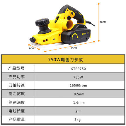 史丹利得伟电刨STPP750平刨木工刨家用菜板砧板手提电动刨子木工