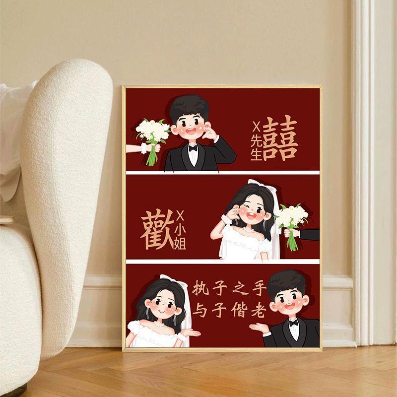 结婚喜字姓氏定制钻石画2025新款婚房手工贴钻新婚礼物十字绣带框