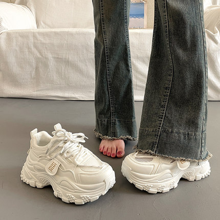 爆款厚底休闲运动小白鞋女2025夏季透气新款百搭炸街老爹鞋ins潮