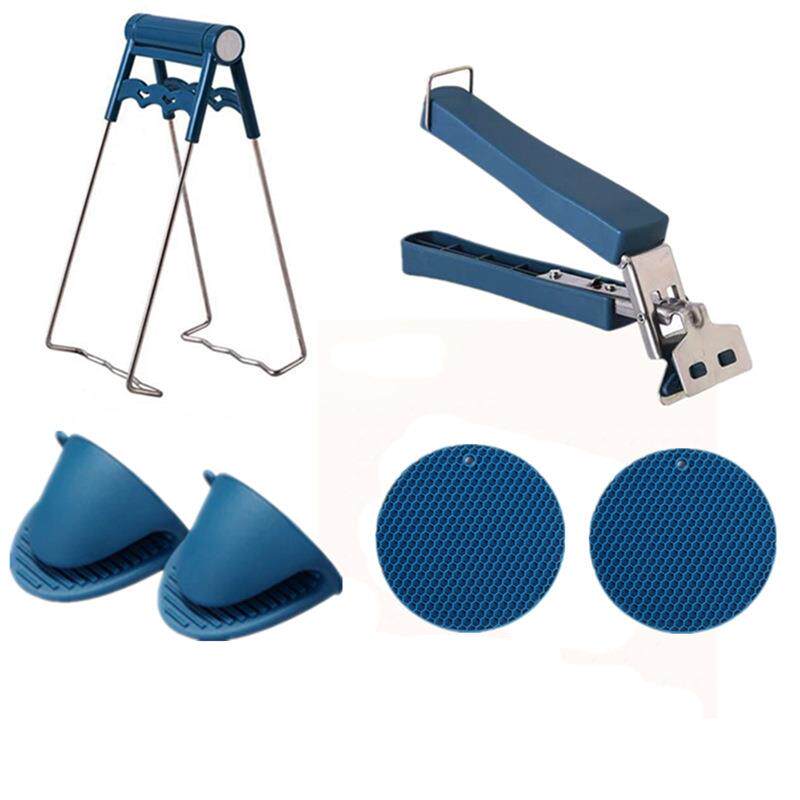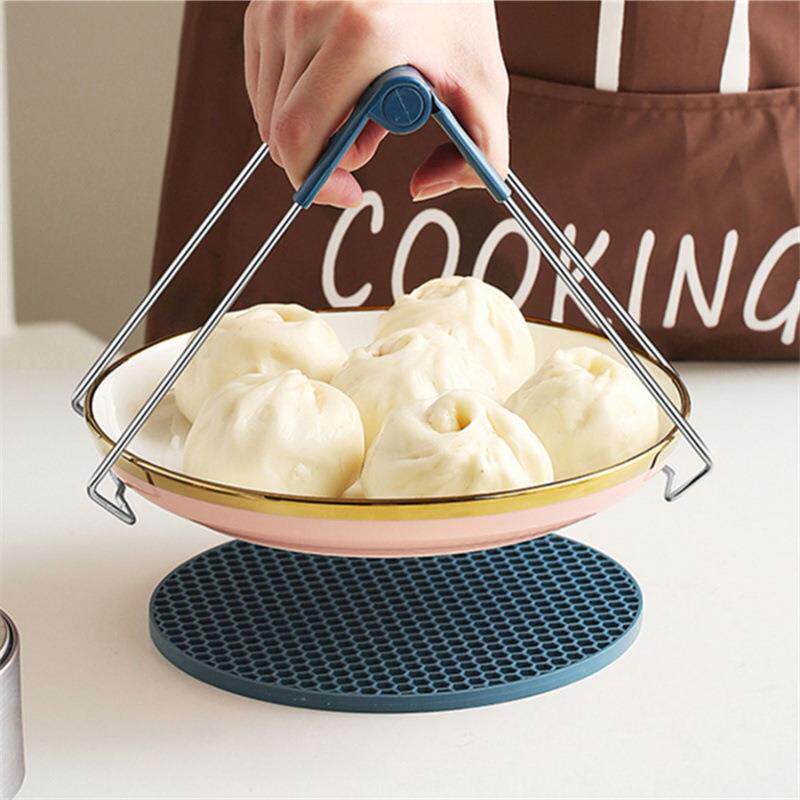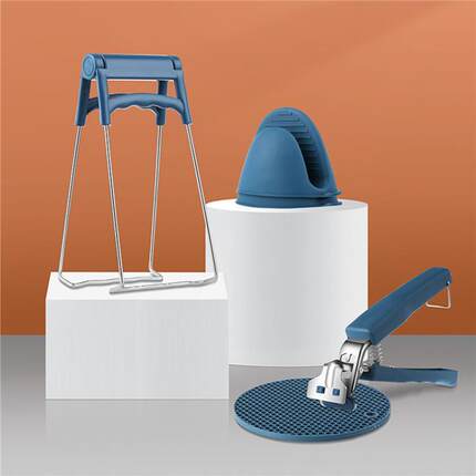 不锈钢蓝色提盘器硅胶手套防烫垫取碗夹蒸锅防滑隔热菜防烫夹套装