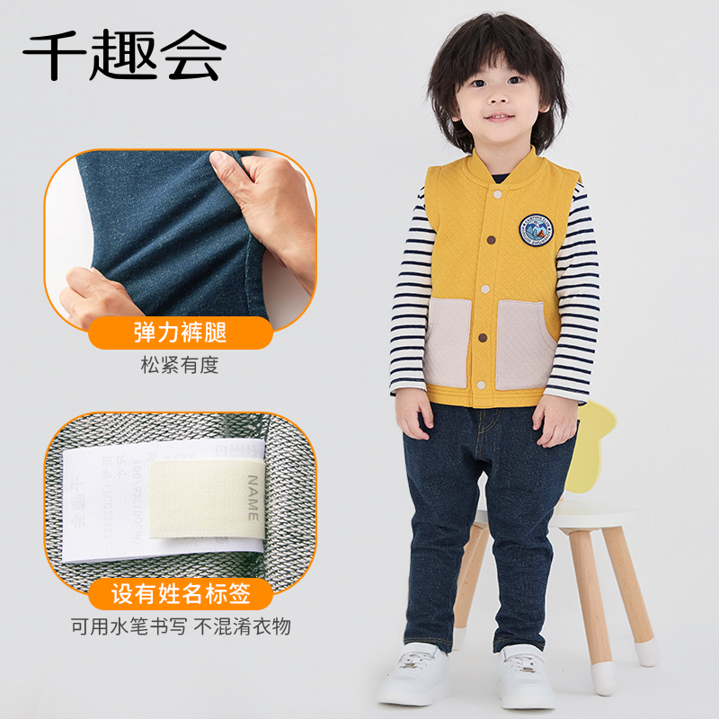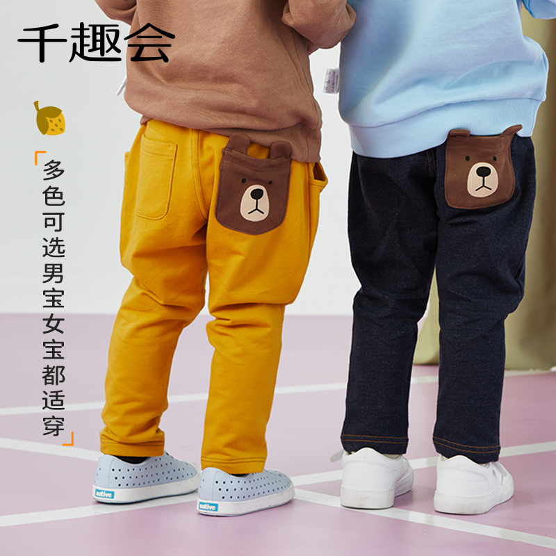 千趣会童装幼儿园宝宝春秋款长裤男童长裤运动裤口袋印花哈伦裤
