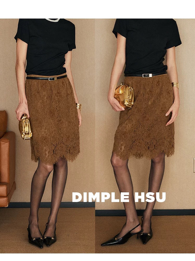 重工雪尼尔蕾丝半身裙2025新款夏季法式优雅中长裙子A字裙花边裙