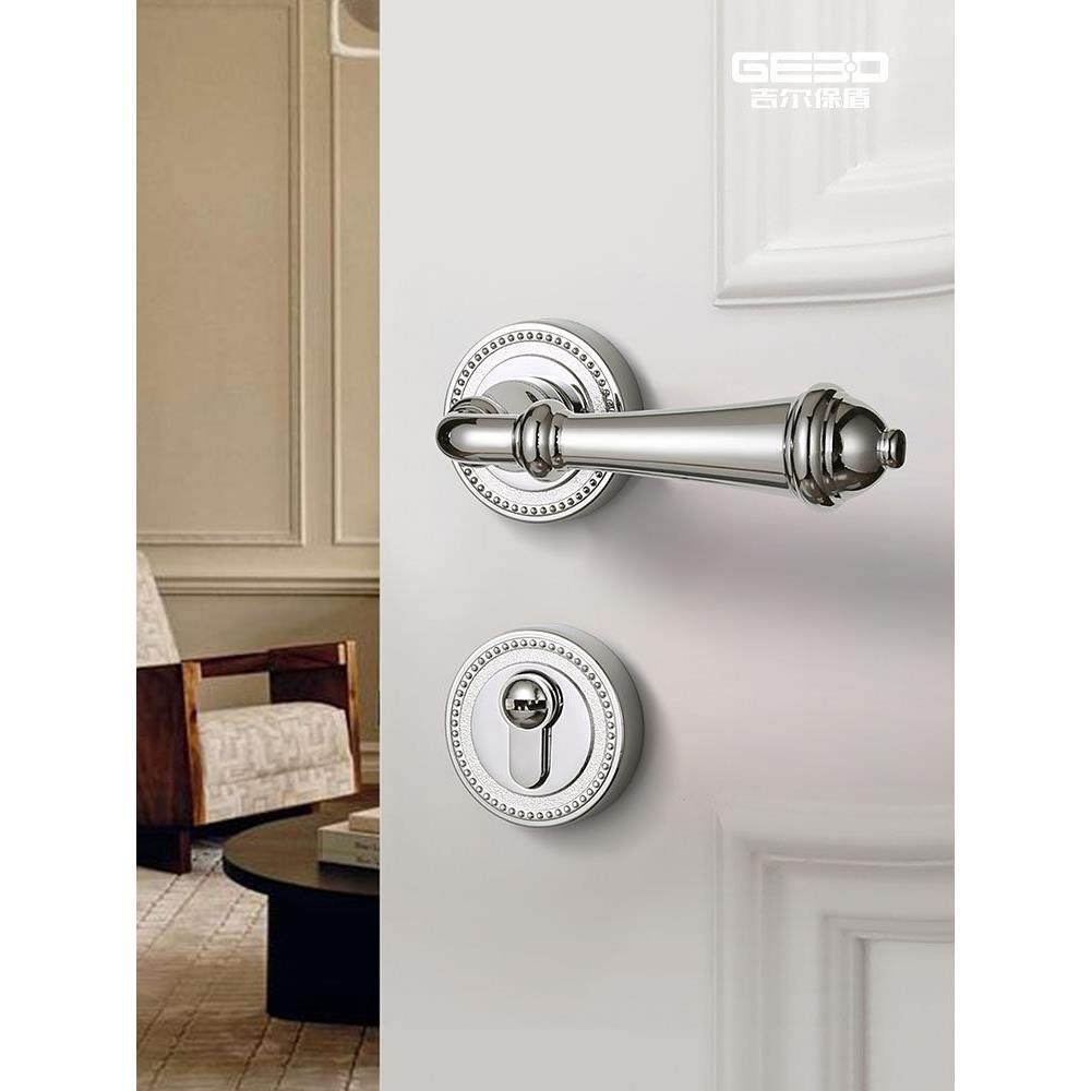 吉尔宝盾法式亮银门锁室内卧室木门拉手美式静音磁中年门锁