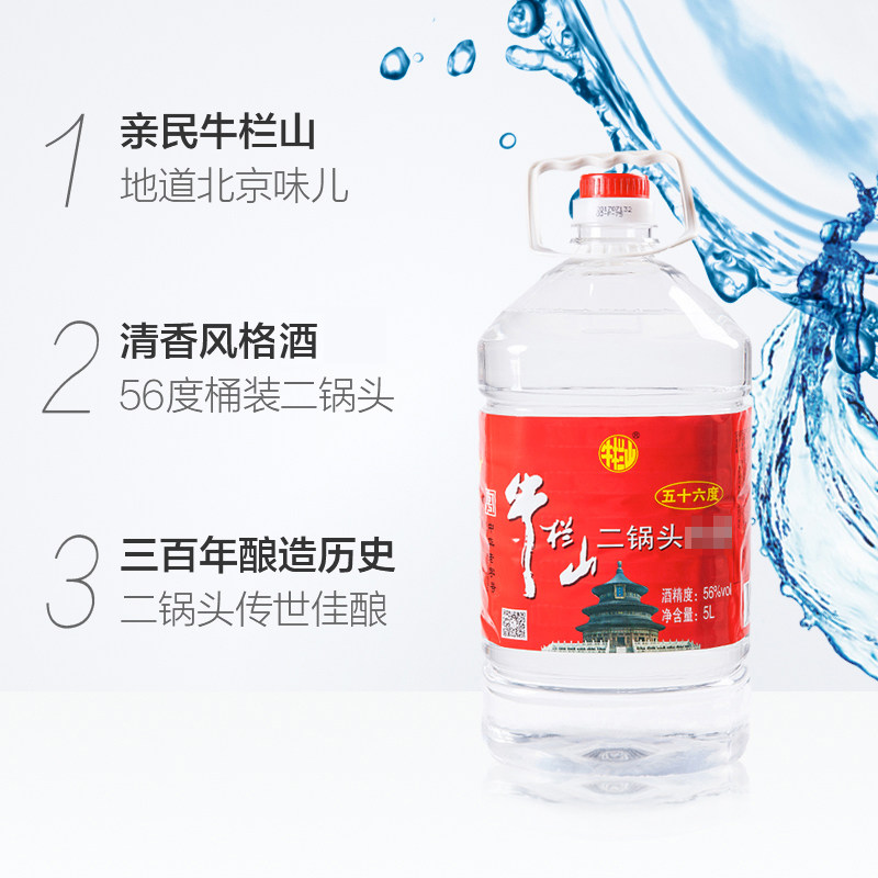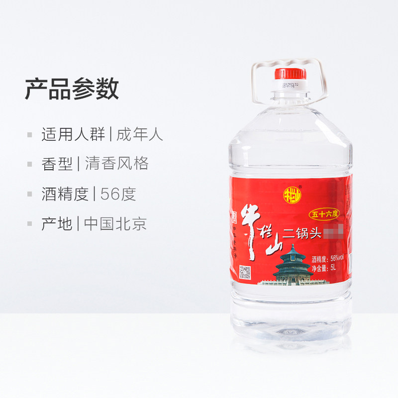 牛栏山二锅头56度塑桶二锅头5L*4桶清香风格整箱装特价大牛桶