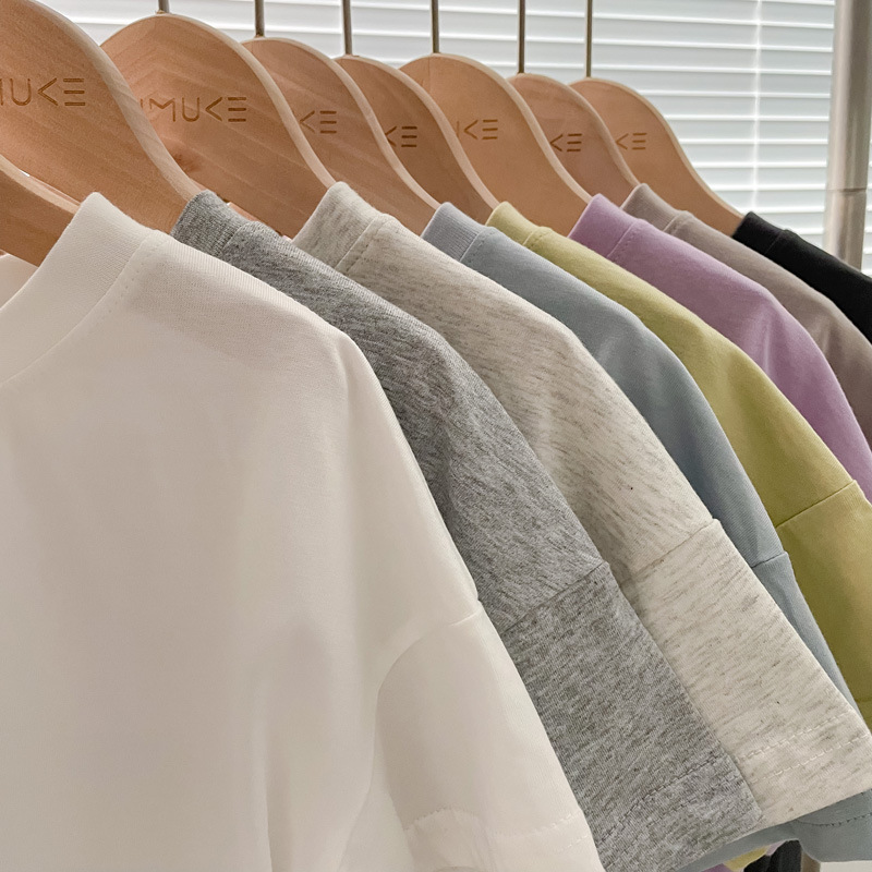 2025夏季新款宝宝落肩宽松短袖男女童纯色爽棉圆领弹力包边T恤衫