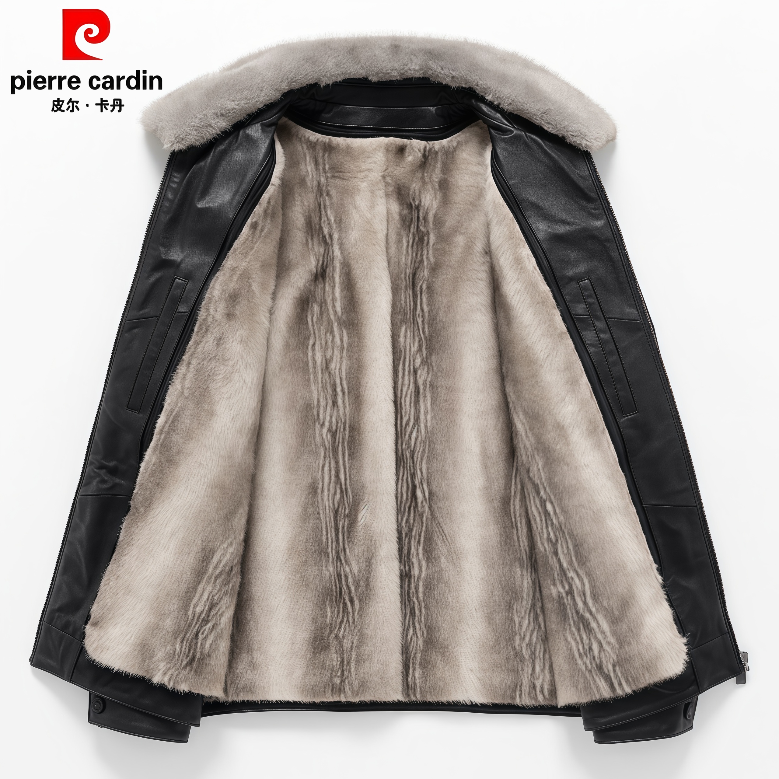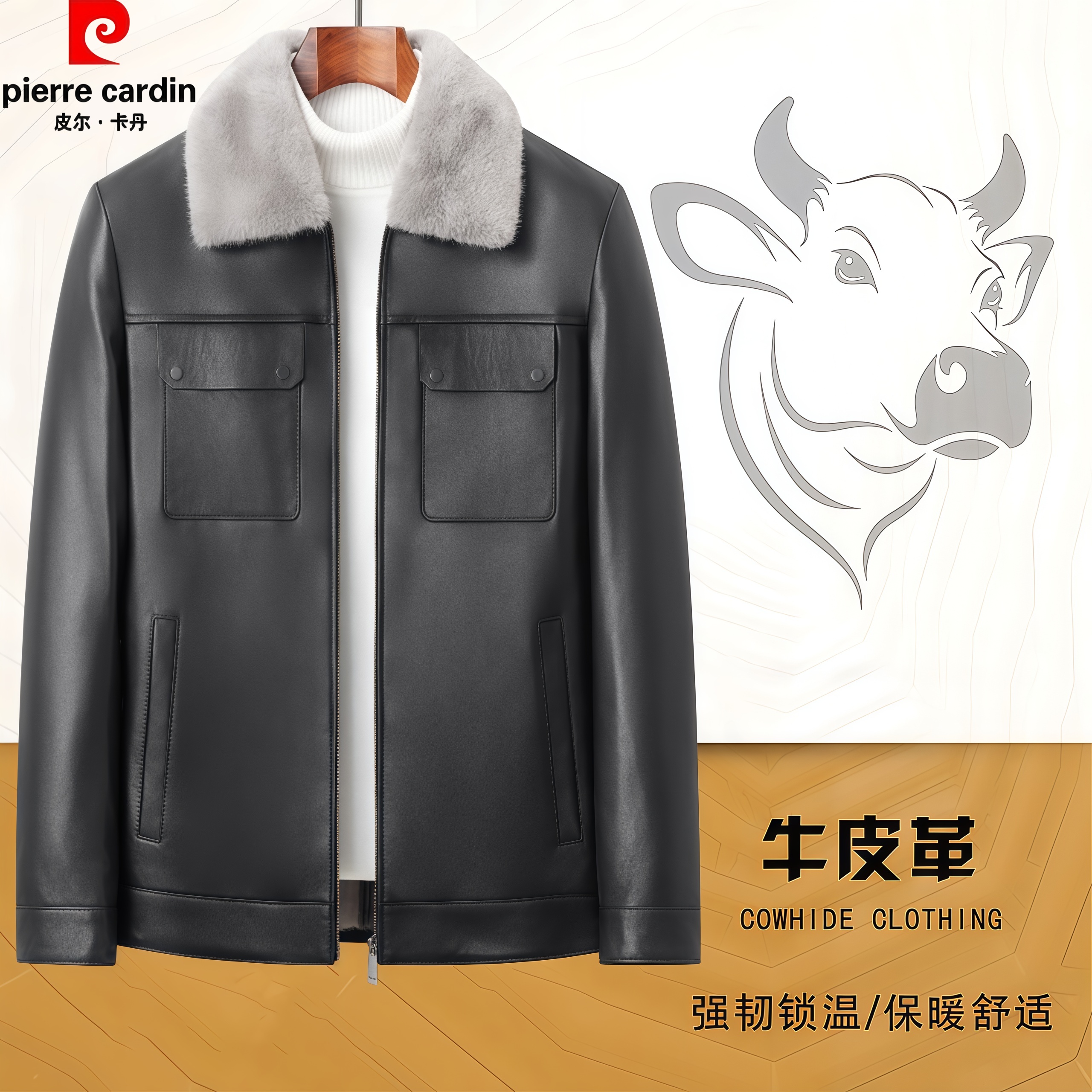 皮尔卡丹中老年加绒加厚皮衣