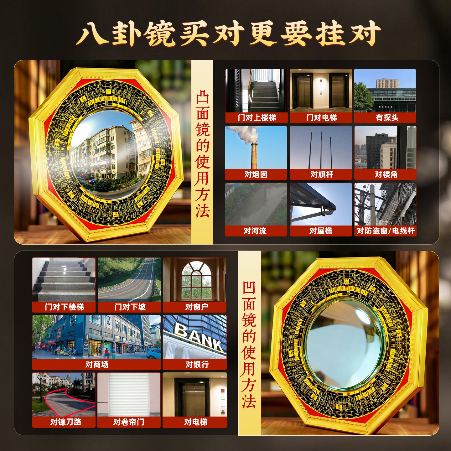 八卦镜凸镜太极凸面凸的家用窗户门口大门口阳台怎么挂九宫镜子