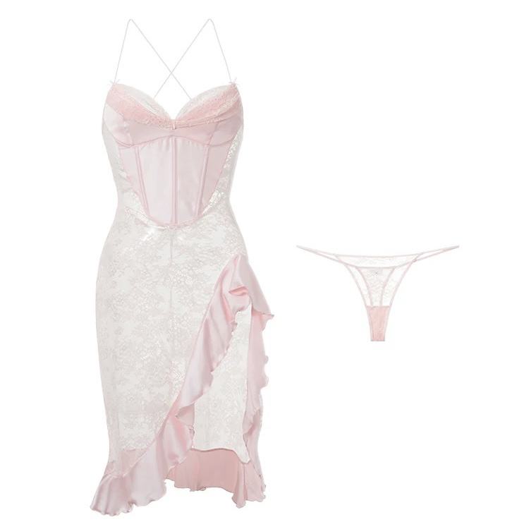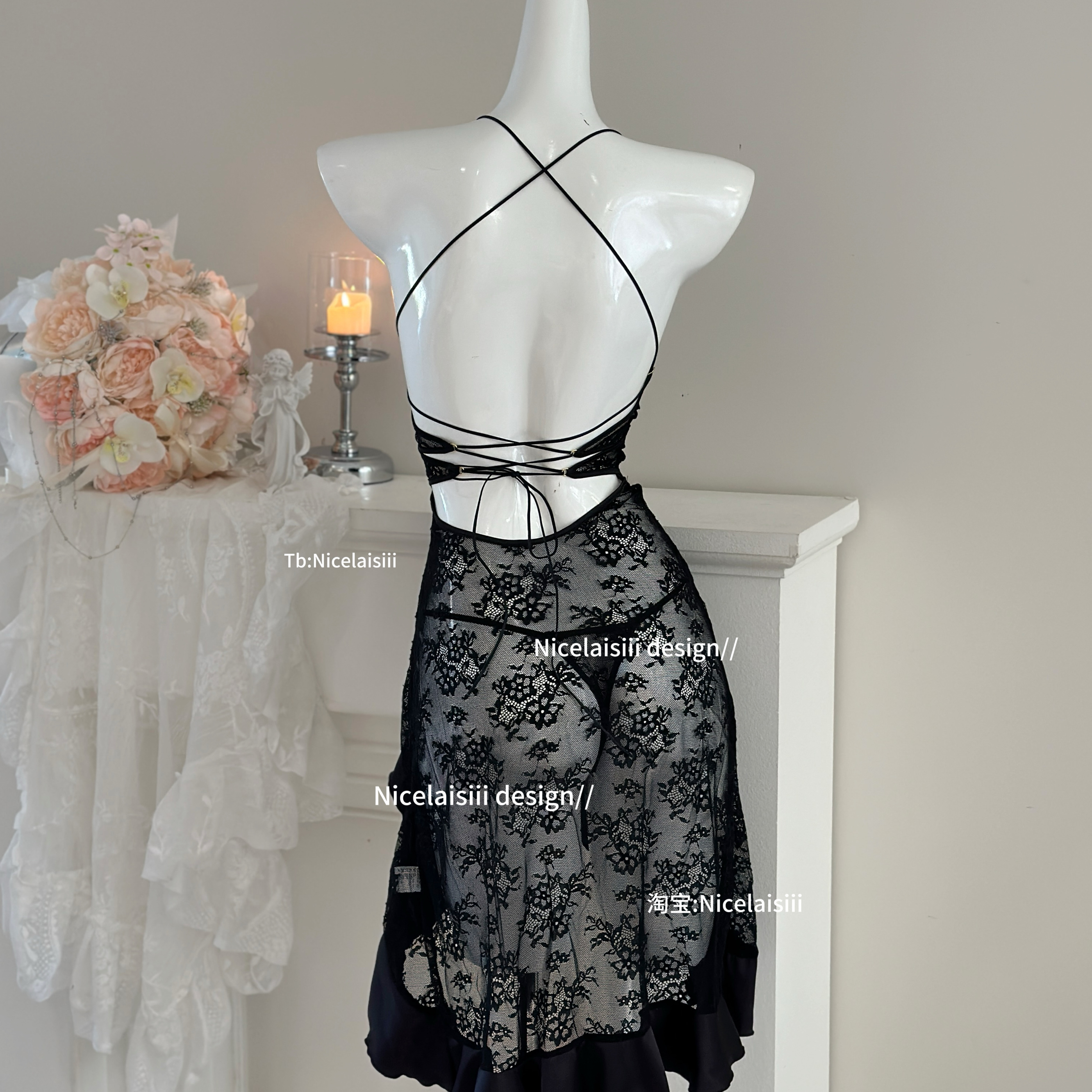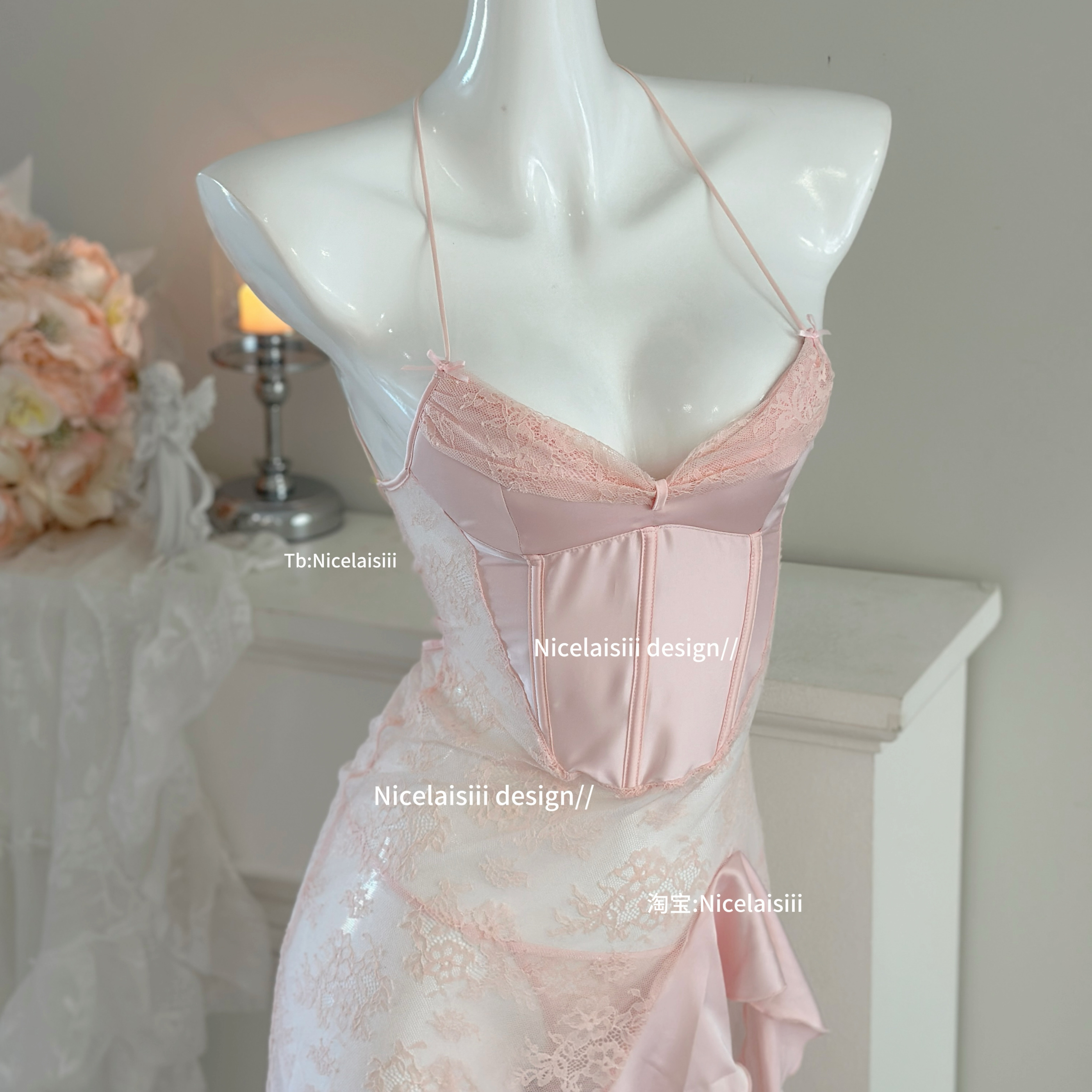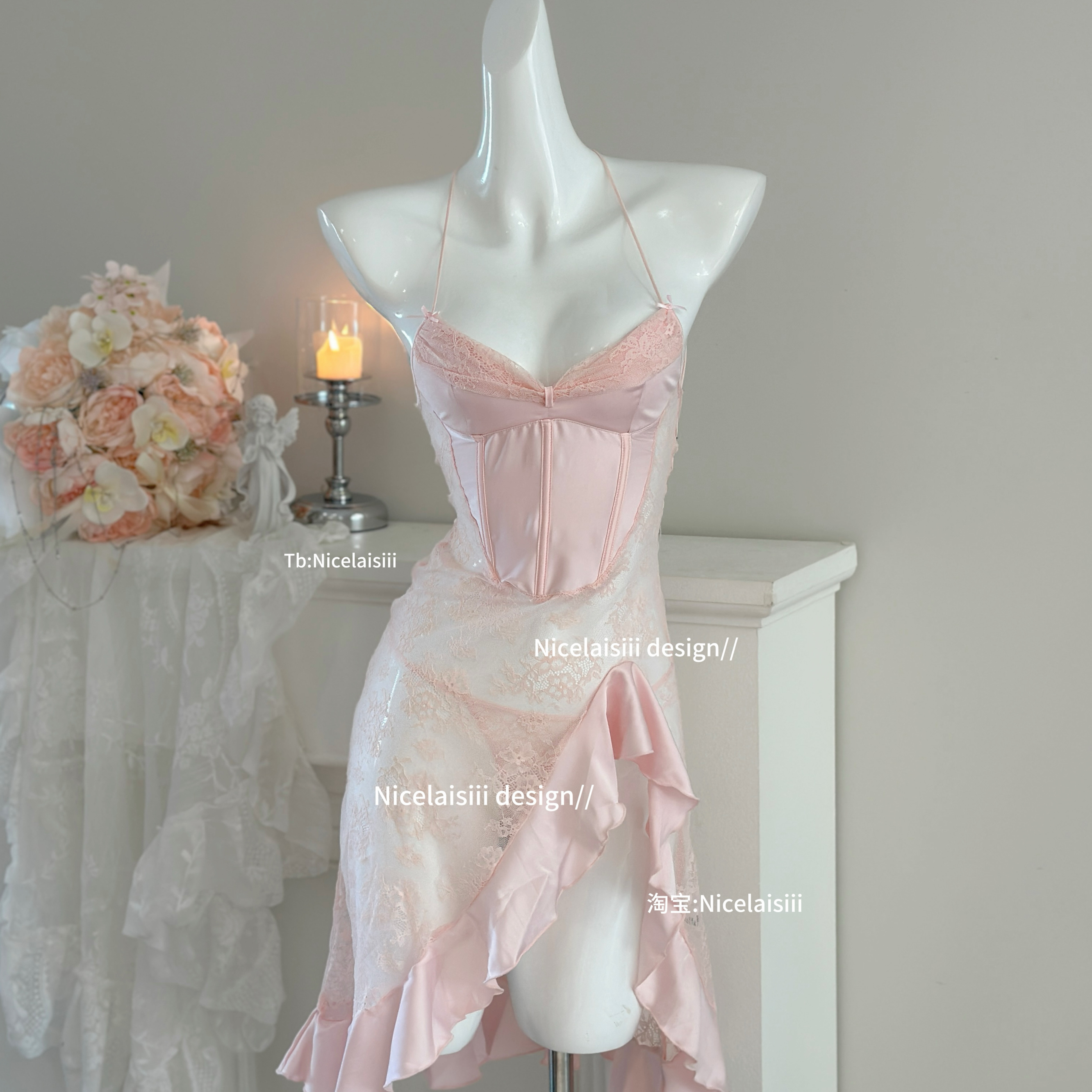 Nicelaisiii蜜桃奶冻 法式蕾丝镂空吊带睡裙性感高级感约会睡衣女