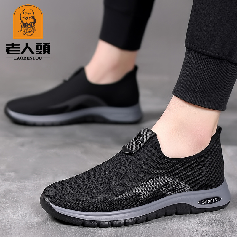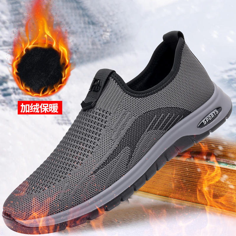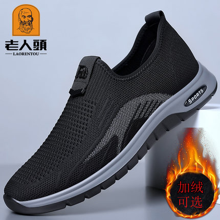 老人头男士休闲鞋中老年爸爸鞋冬季加绒保暖棉鞋网面运动鞋健步鞋