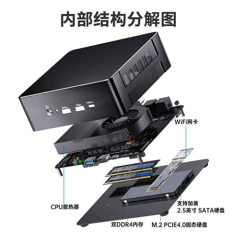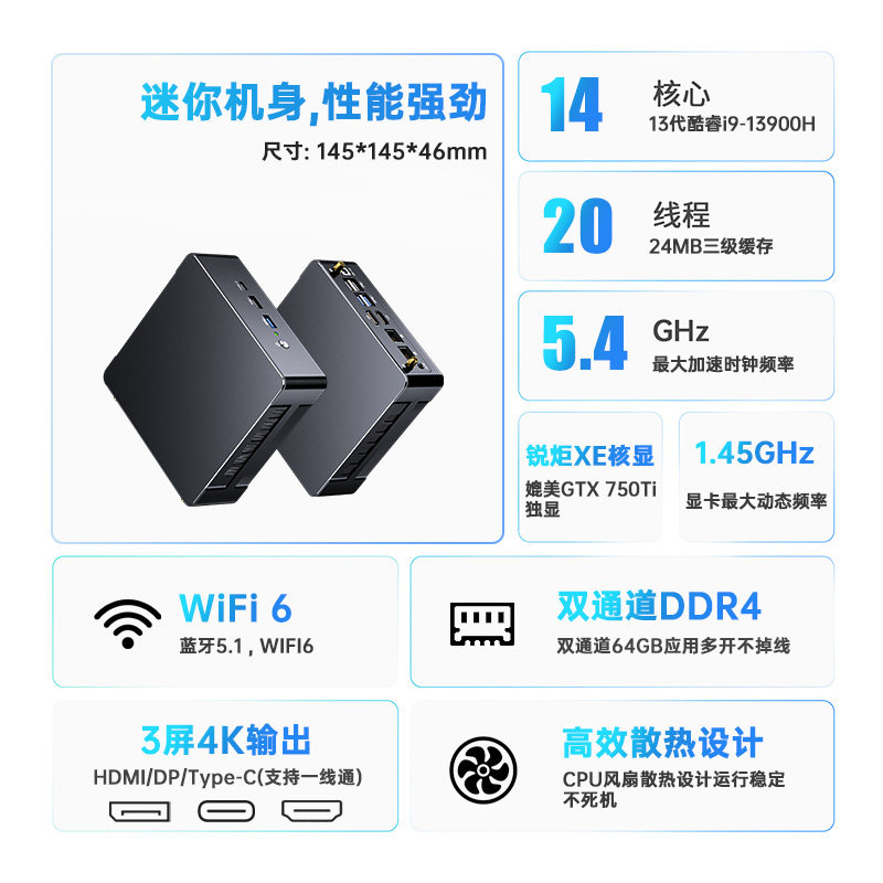 13代i9-13900H迷你主机游戏办公家用mini微型组装台式电脑