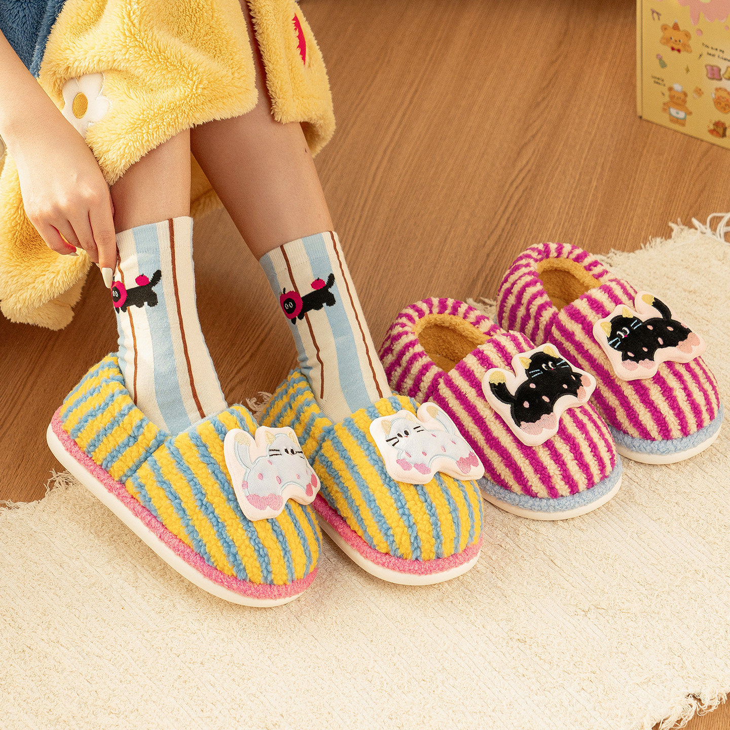 多巴胺可爱小猫棉拖鞋女包跟冬季室内家居保暖月子情侣毛绒拖鞋男