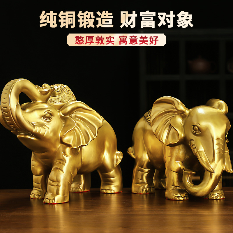 纯铜象摆件一对吸水大象装饰礼品