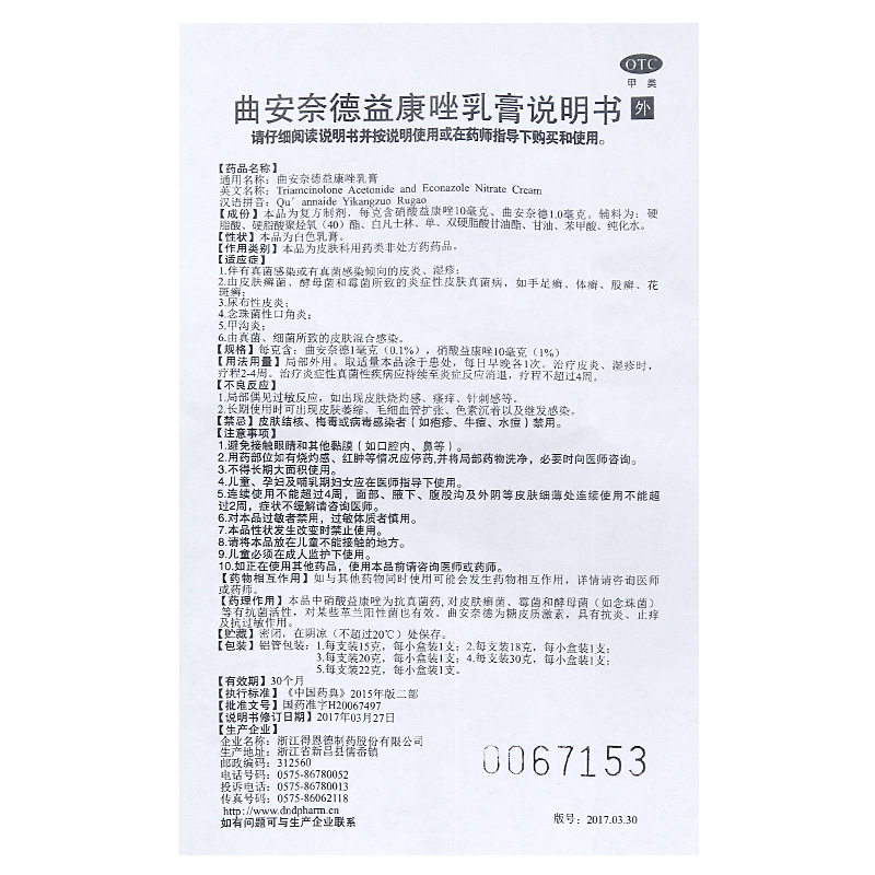 【得恩德】曲安奈德益康唑乳膏10mg1mg*15g*1支/盒