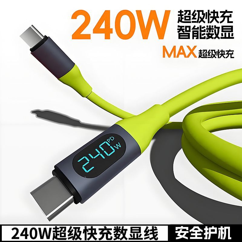 森达升240W数显通用typec液态硅胶绑带快充数据线PD3.1大功率充电线适用苹果16华为超级闪充小米安卓平板通用