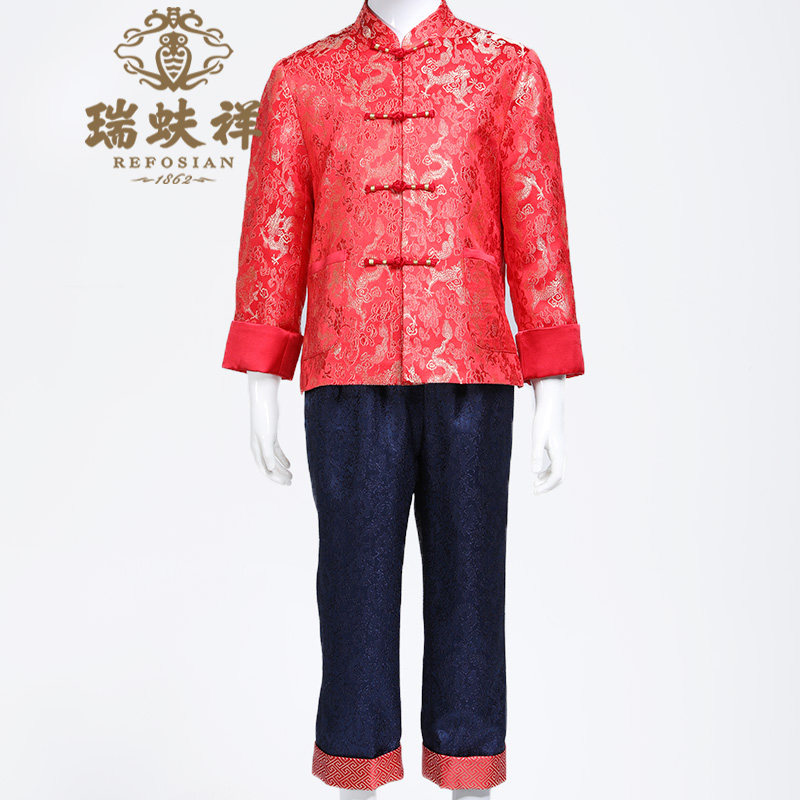 新款儿童男裤子蓝色中国风儿童唐装幼儿园夫六一节新年服中式过年
