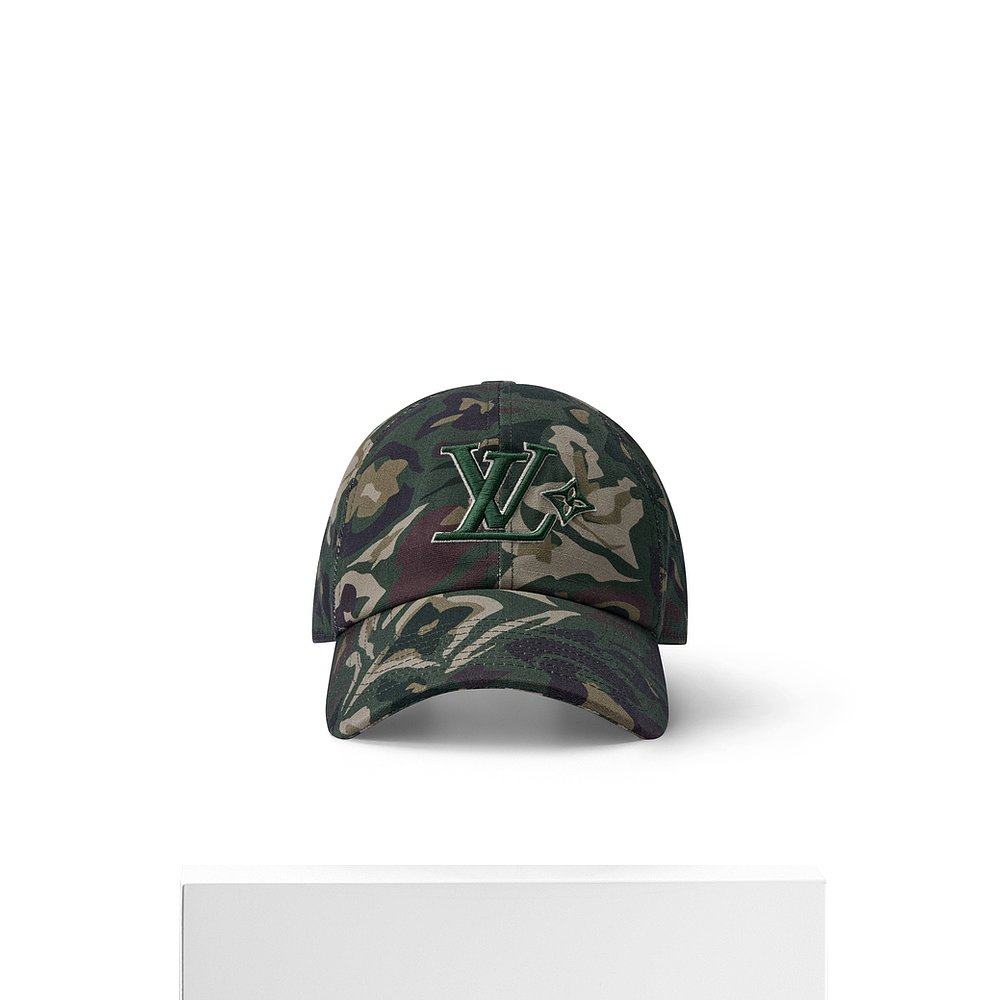 自营1h可退 欧洲直邮LV路易威登 男士绿色棉迷彩印花棒球帽帽子