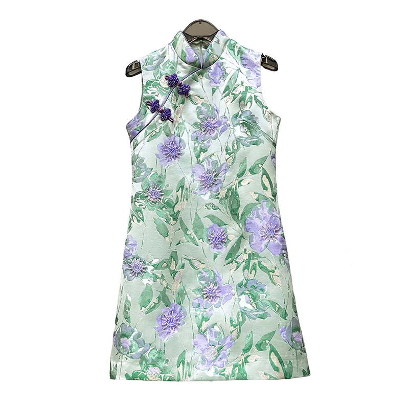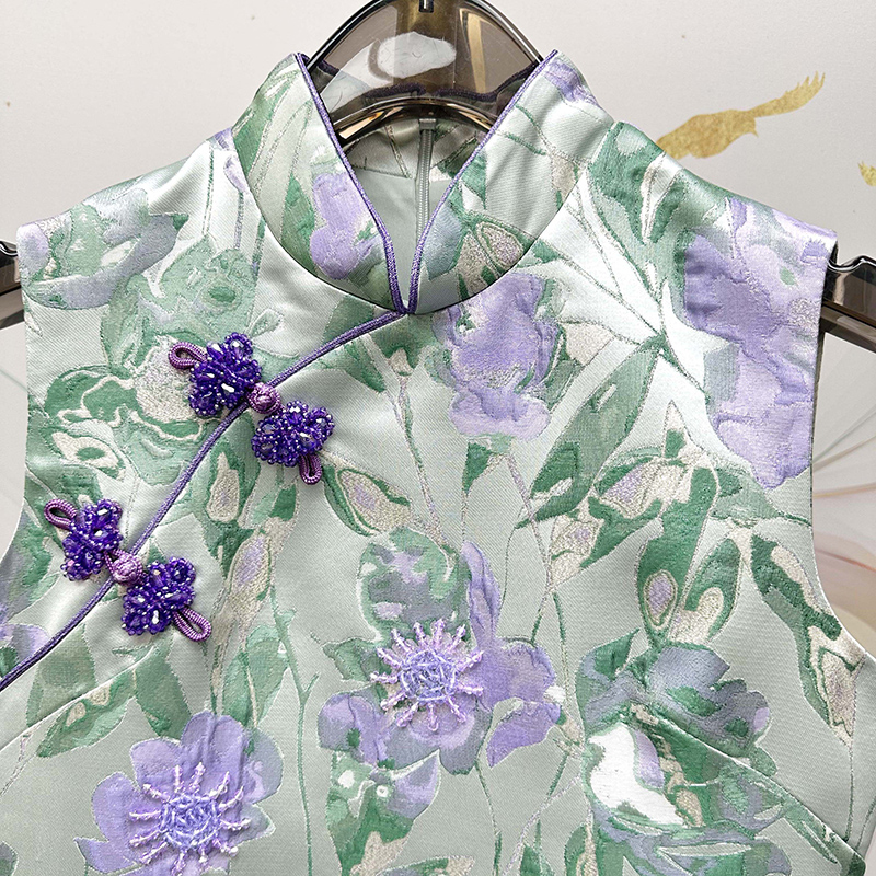 小清新国风潮~夏季新款女装新中式斜襟旗袍立领刺绣钉珠背心裙