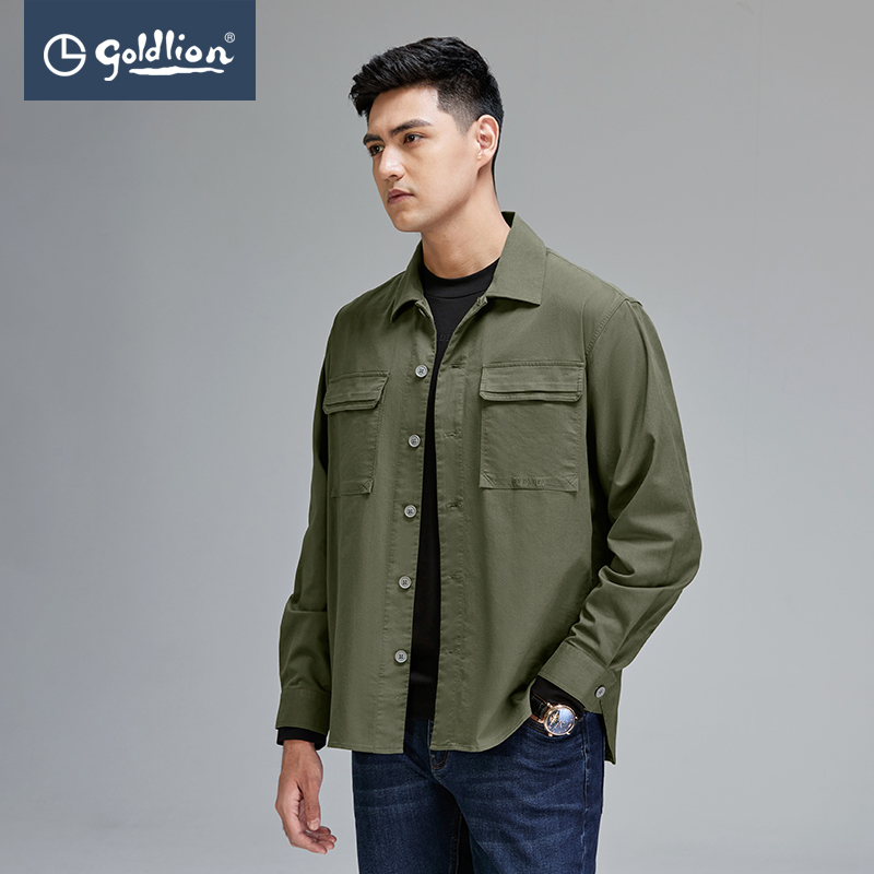 金利来秋季新款男士休闲外穿式衬衫翻领宽松休闲廓形长袖衬衣外套