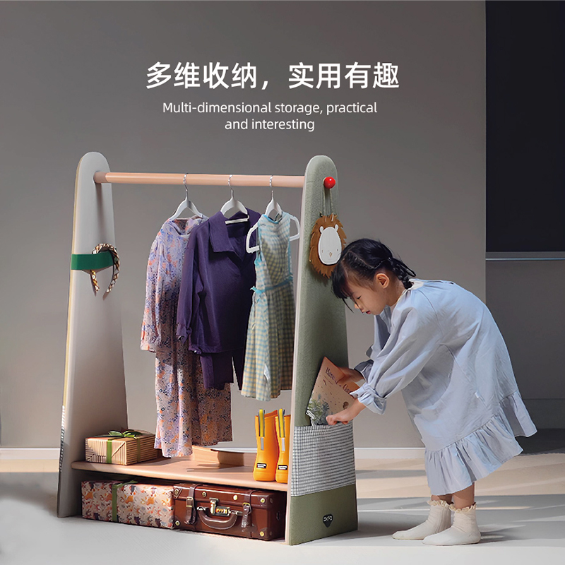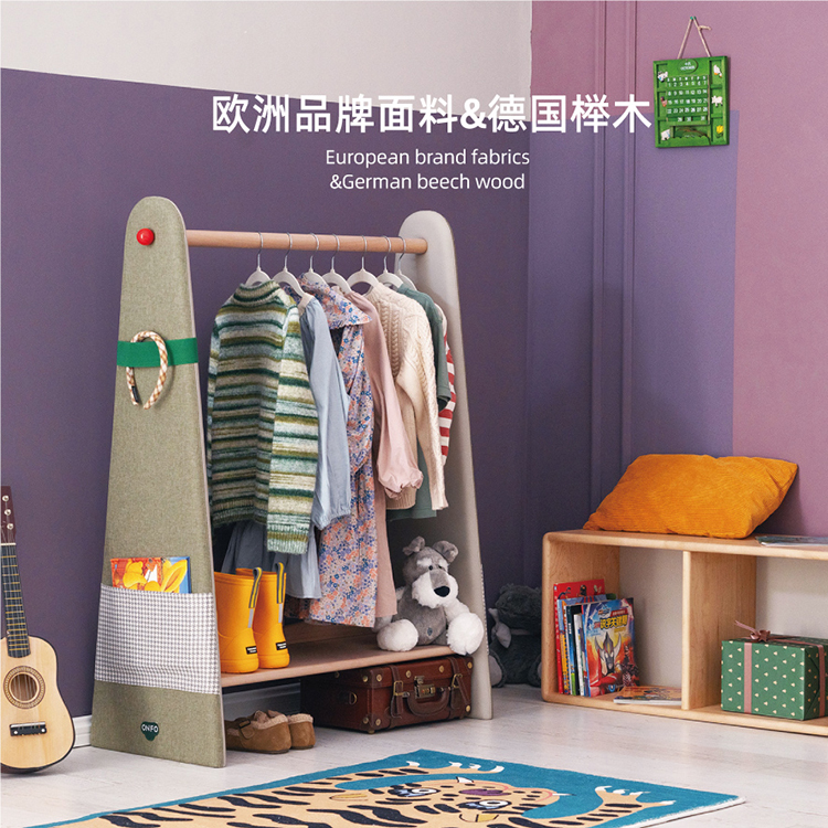 ONFO康康儿童房实木落地衣帽架宝宝中童多功能布艺挂衣架卧室收纳