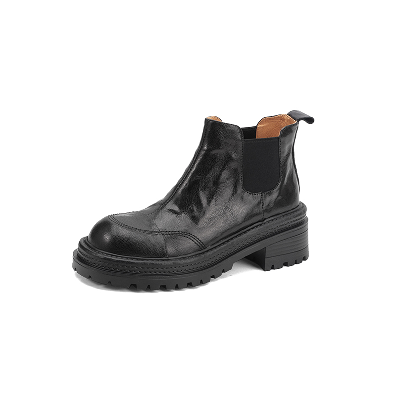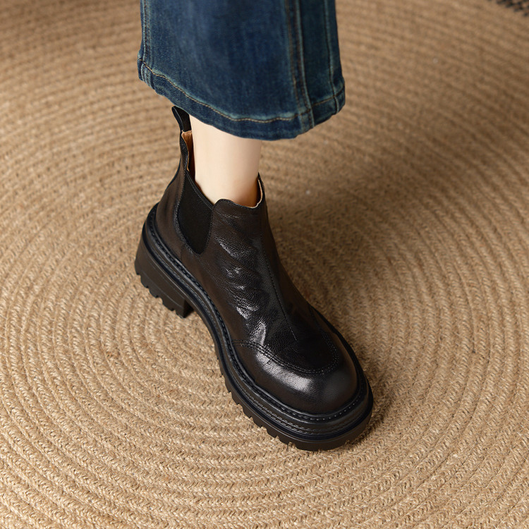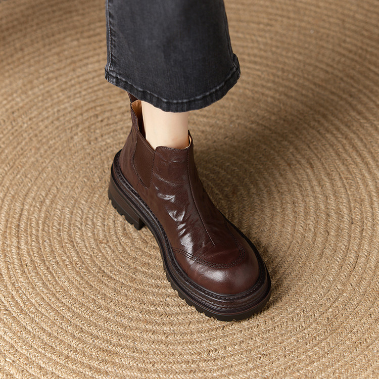 2025新款秋冬真皮布洛克靴子女款低帮英伦风厚底马丁靴切尔西短靴