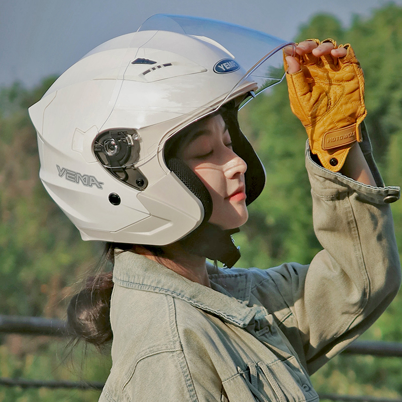 野马双镜片防晒四季电动车半盔秋冬季保暖安全帽3C认证摩托车头盔