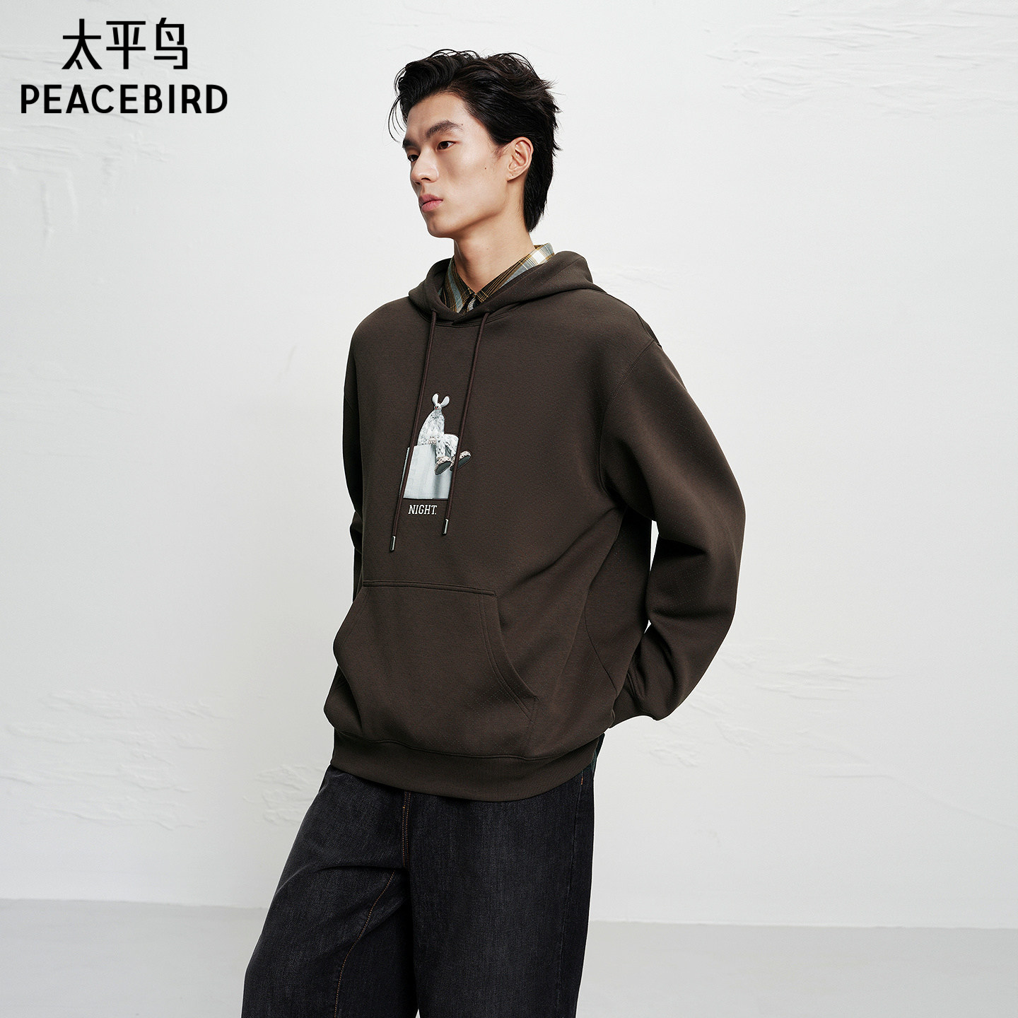 【商场同款】太平鸟男装 潮流美式套头连帽宽松卫衣男B2CRF4131+