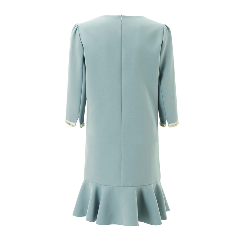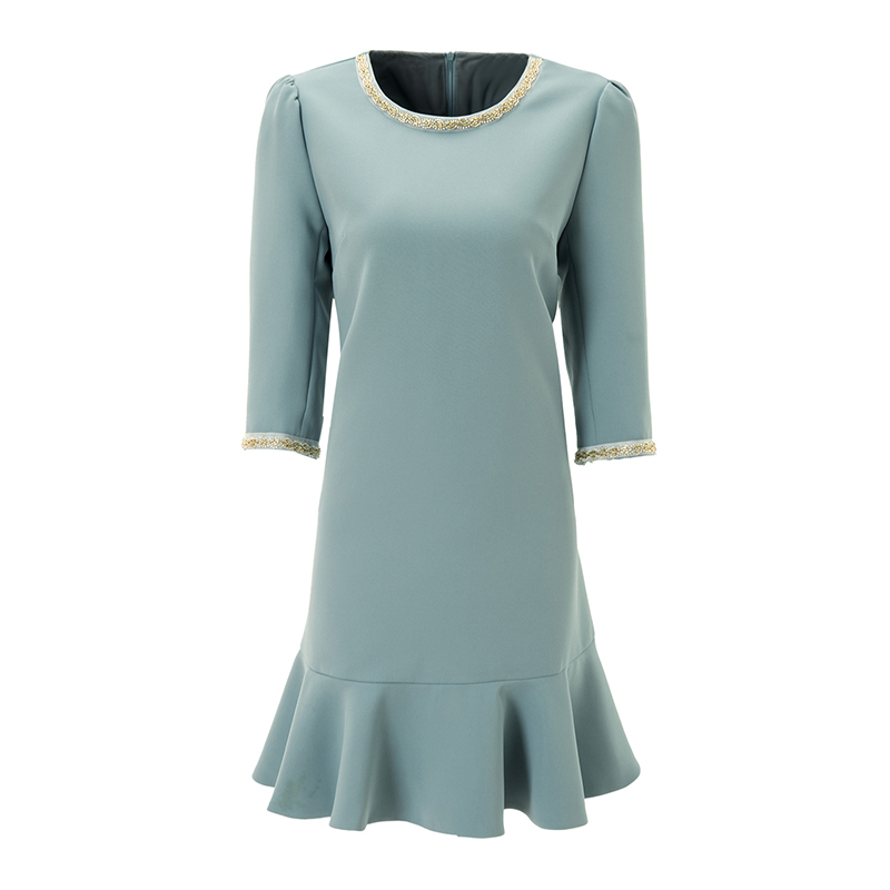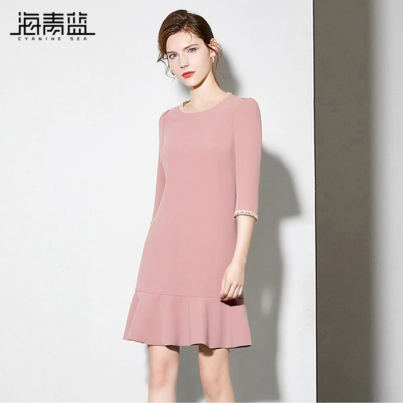 海青蓝黑色赫本风显瘦鱼尾裙2025秋季新款重工钉珠小香风连衣裙女