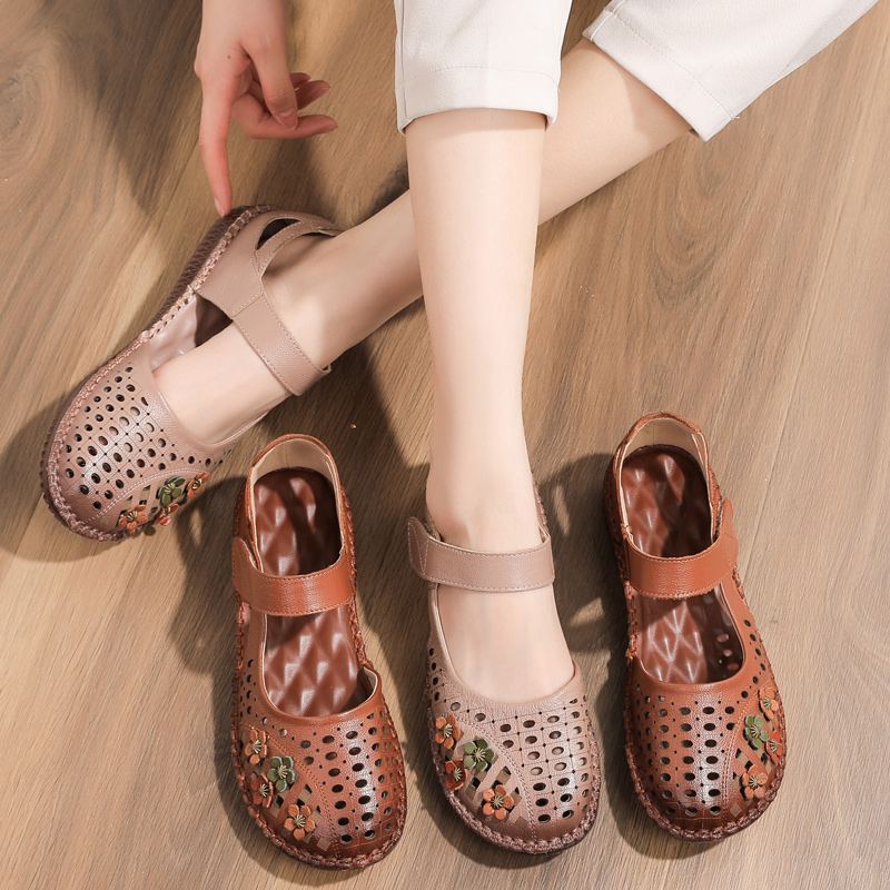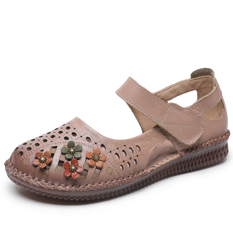 真皮软底妈妈鞋凉鞋平底镂空洞洞鞋单鞋防滑舒适中老年人女鞋夏季