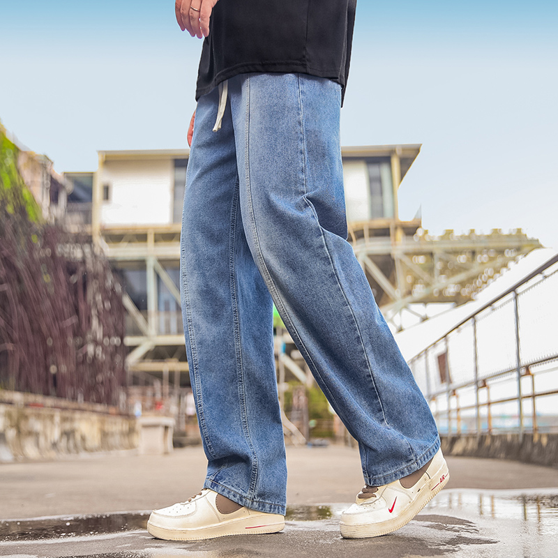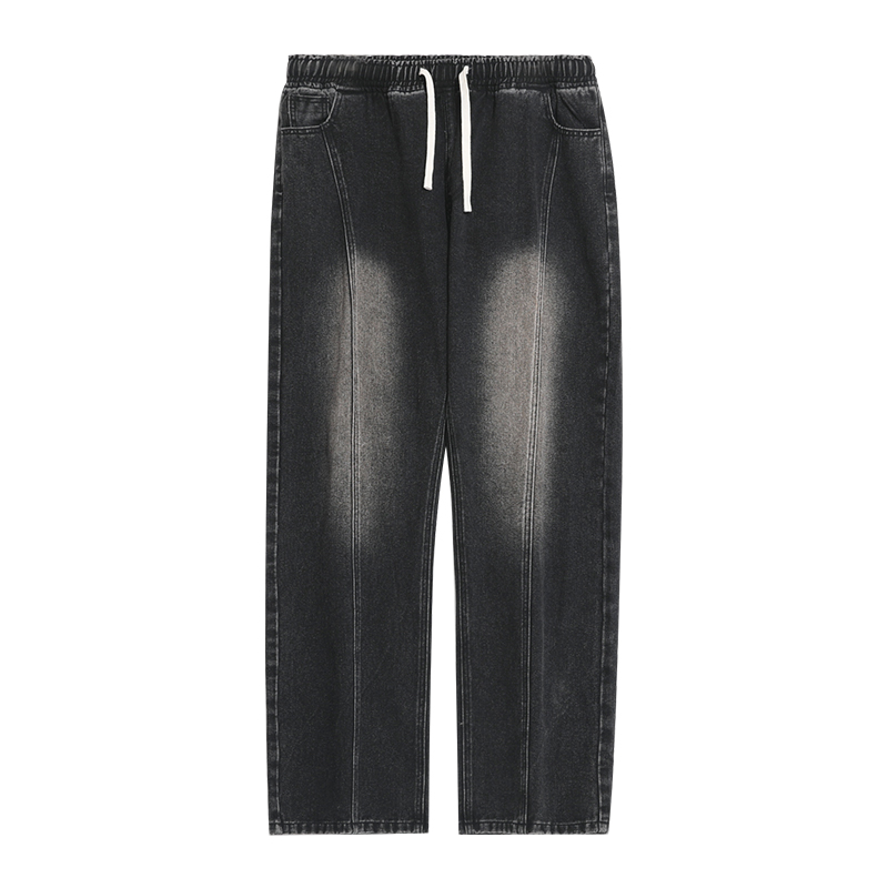 纺布者大码男装美式街头松紧腰渐变牛仔裤大码潮牌阔腿直筒牛仔裤