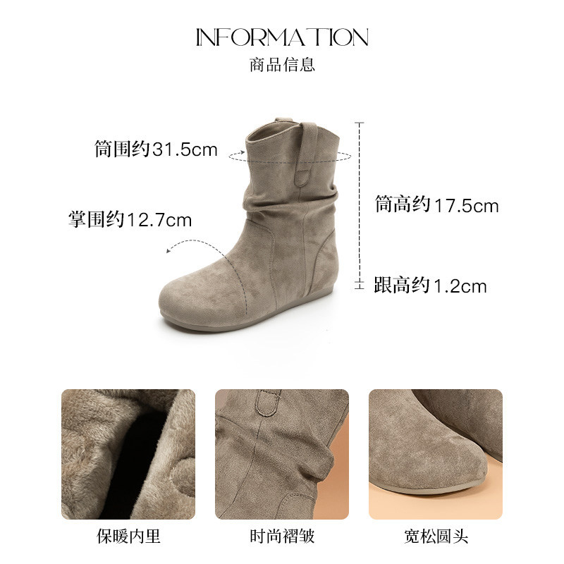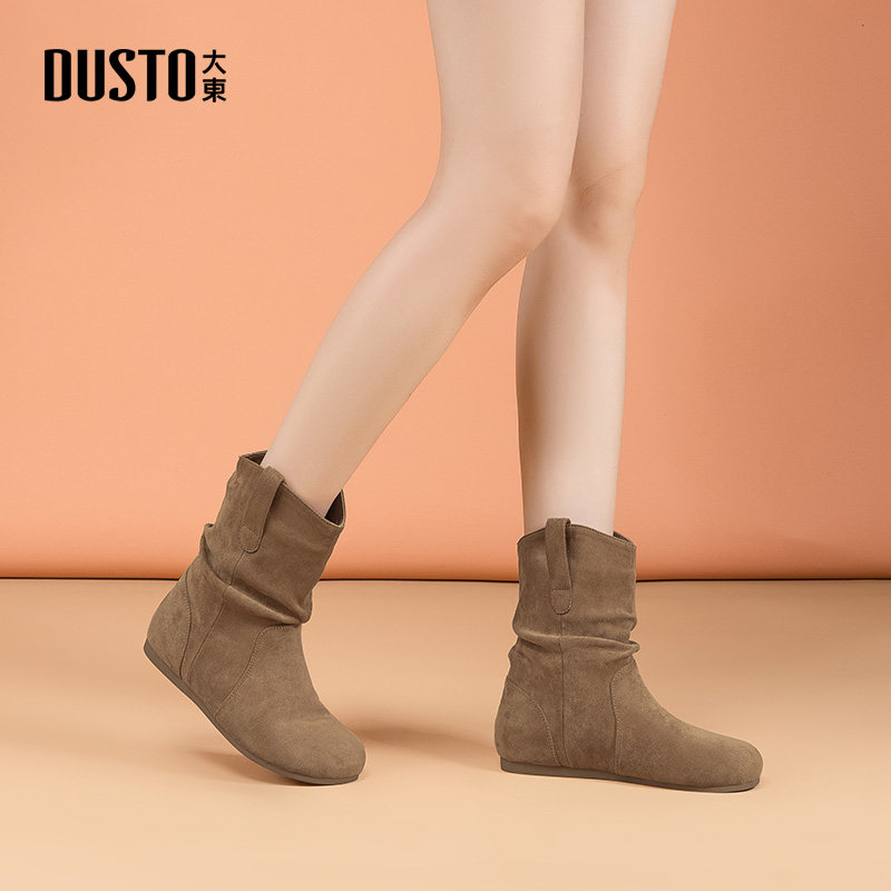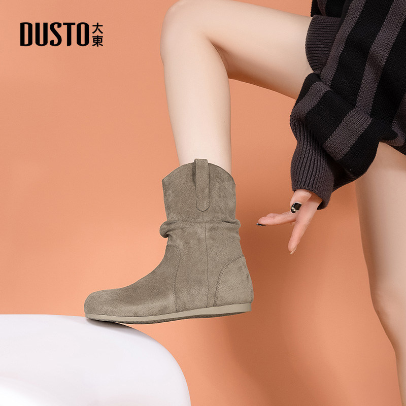 大东时装靴女鞋2025冬新款复古西部堆堆靴加绒美拉德勃肯短靴0225
