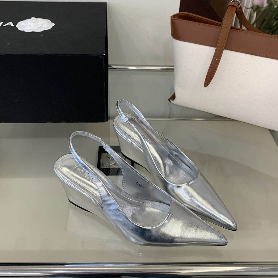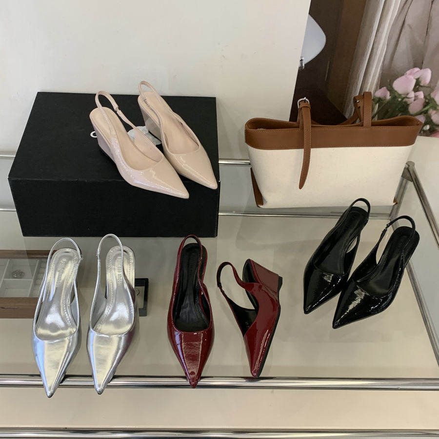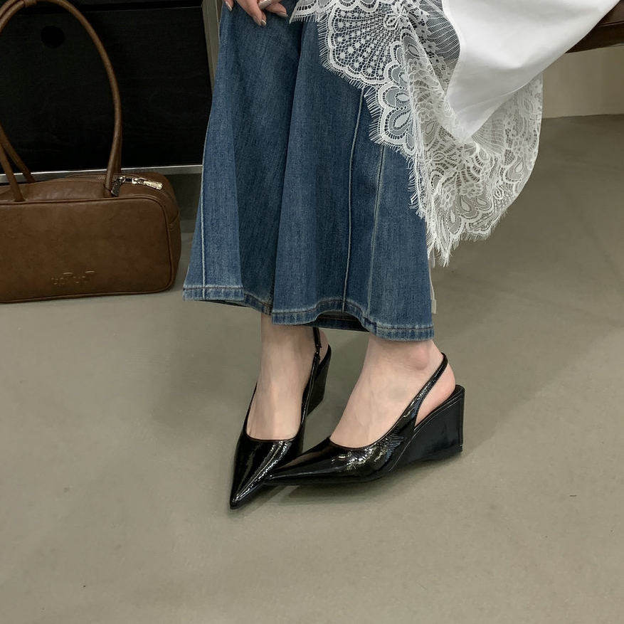 法式气质尖头坡跟漆皮包凉