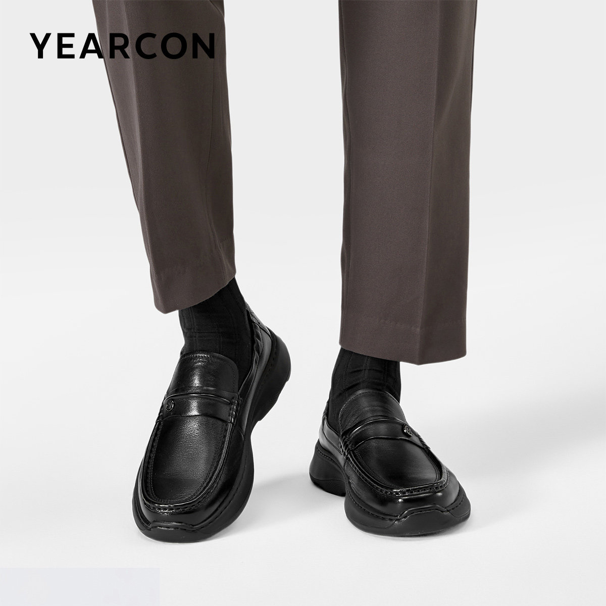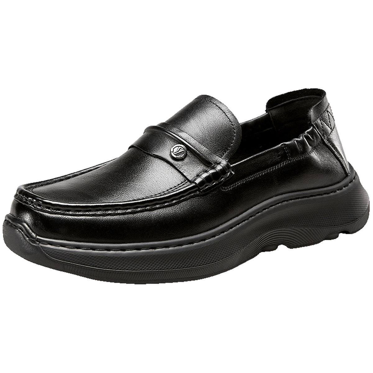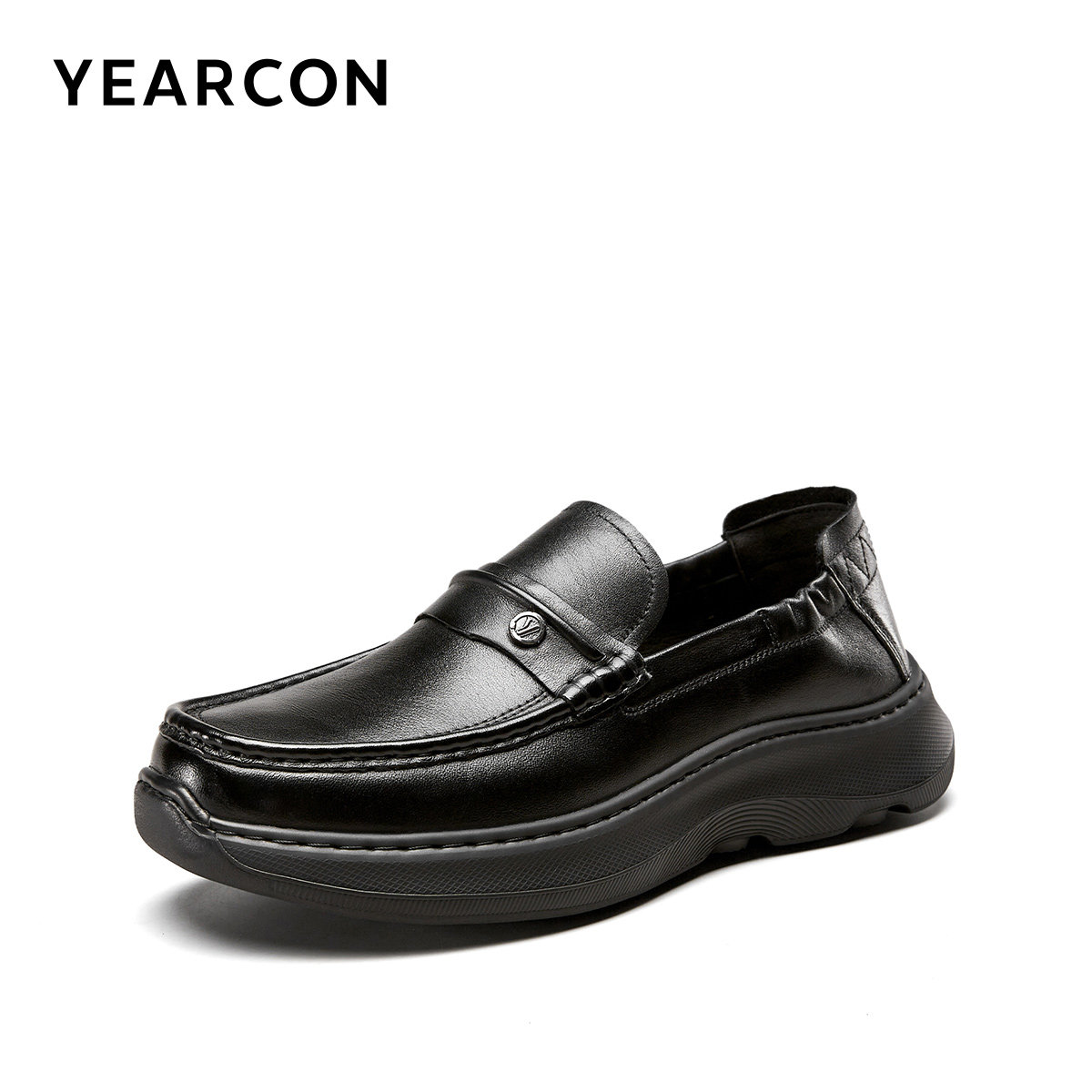 意尔康男鞋春秋季真皮休闲皮鞋软底一脚蹬乐福鞋男士厚底老钱风