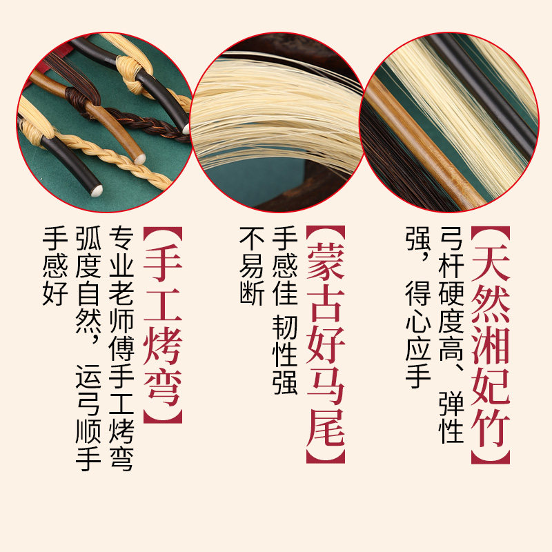 京胡弓子专业琴弓湘妃竹考级演奏级专用胡琴弓内蒙真马尾乐器配件