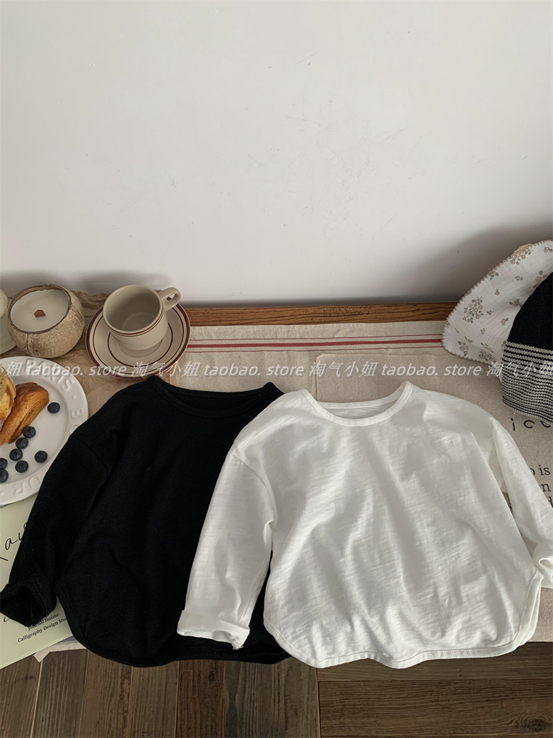 淘气小妞 男女童长袖T恤春秋25新款韩版宝宝洋气打底衫竹节棉上衣