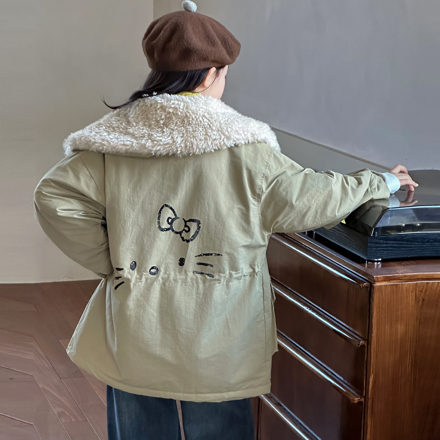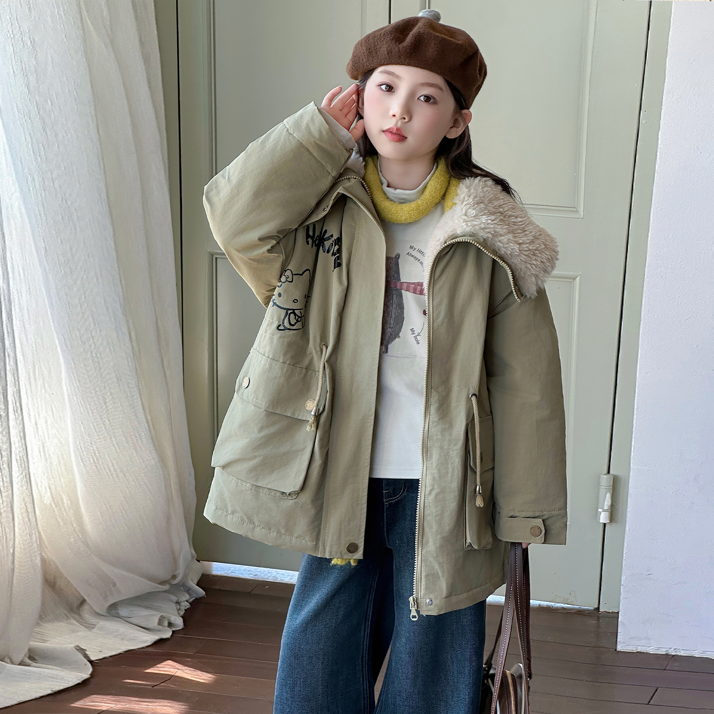 贝田2025新款冬季女童棉服儿童派克服秋冬款加绒加厚女孩冬天外套