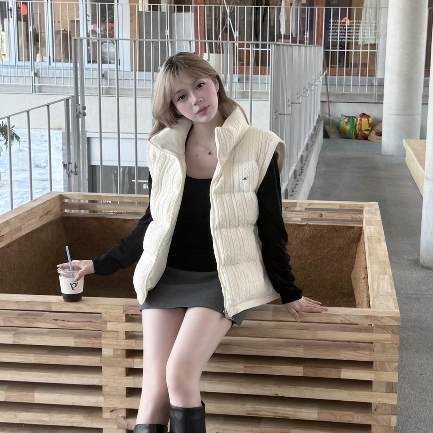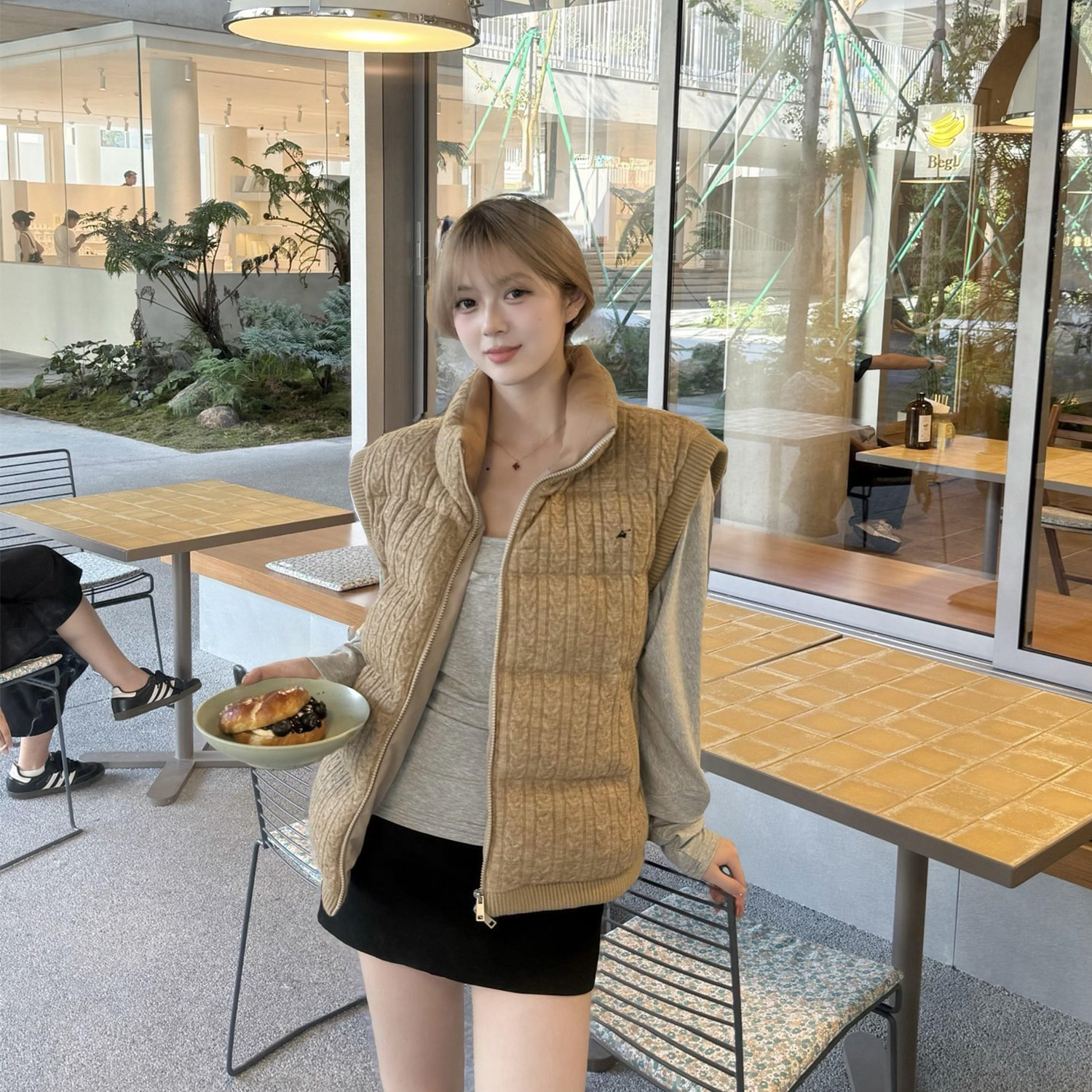 25秋冬季新款立领拉链针织羽绒服女宽松显瘦百搭毛衣外套小马马甲