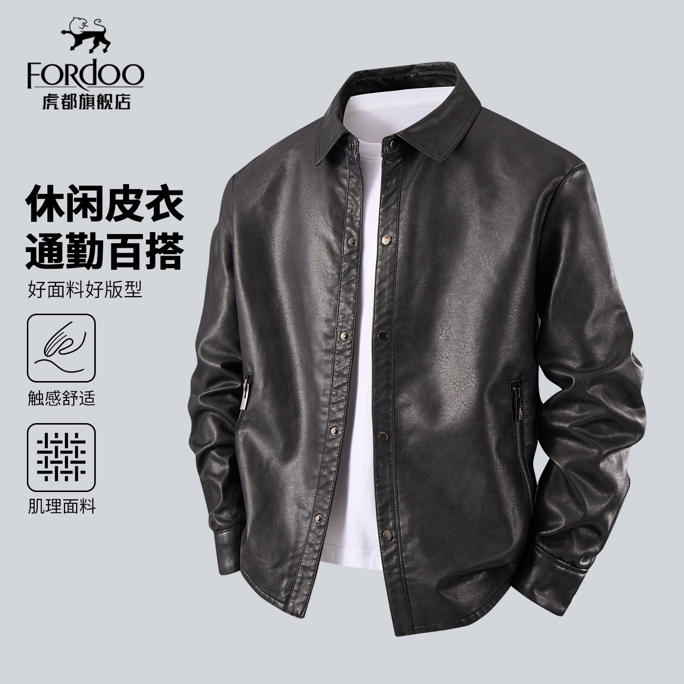【商务休闲&轻奢PU夹克】虎都秋春新品男士经典翻领纽扣夹克外套