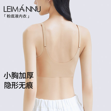 粉底液无痕隐形美背内衣女小胸聚拢加厚显大夏季吊带露背运动文胸