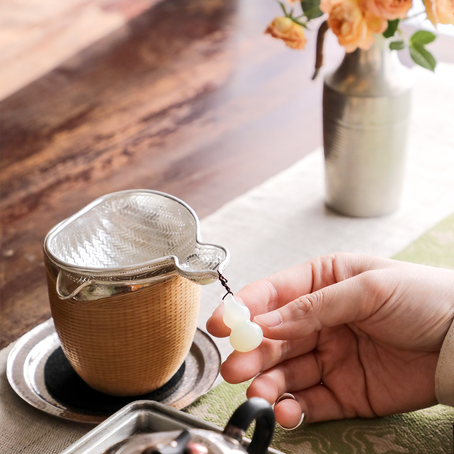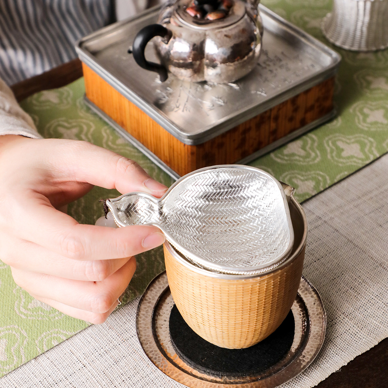 纯银时代 玉葫芦茶漏茶滤足银999纯手工编织过滤器家用泡茶过滤