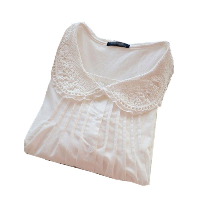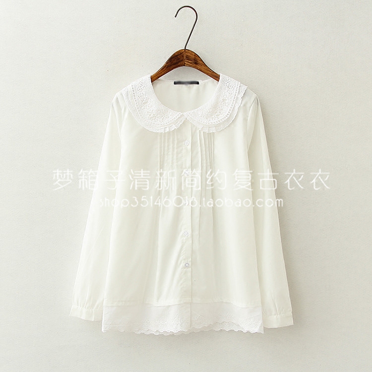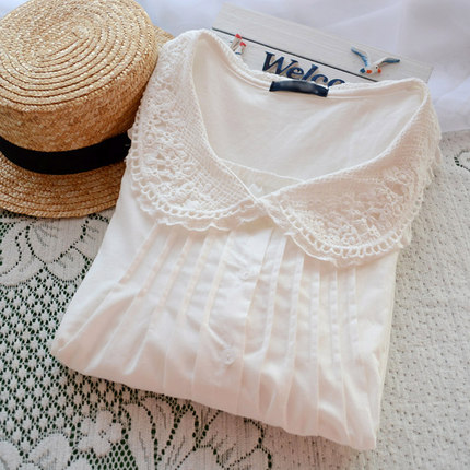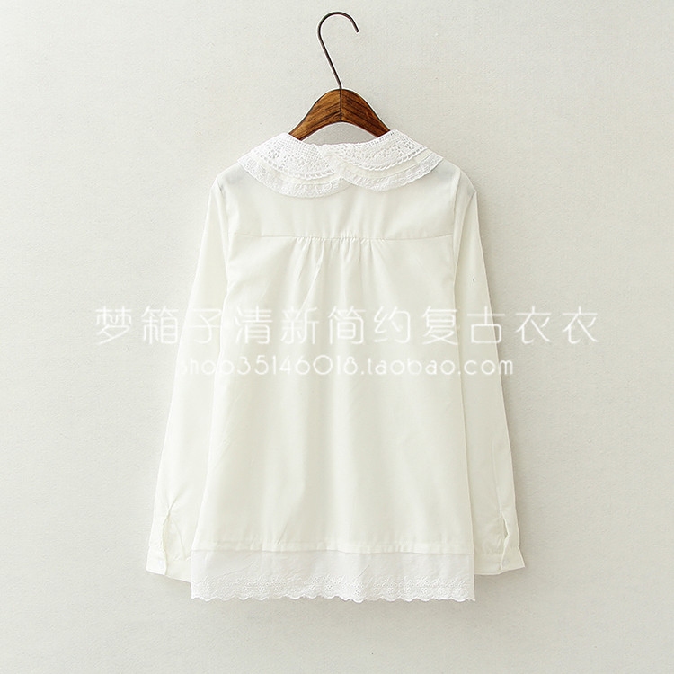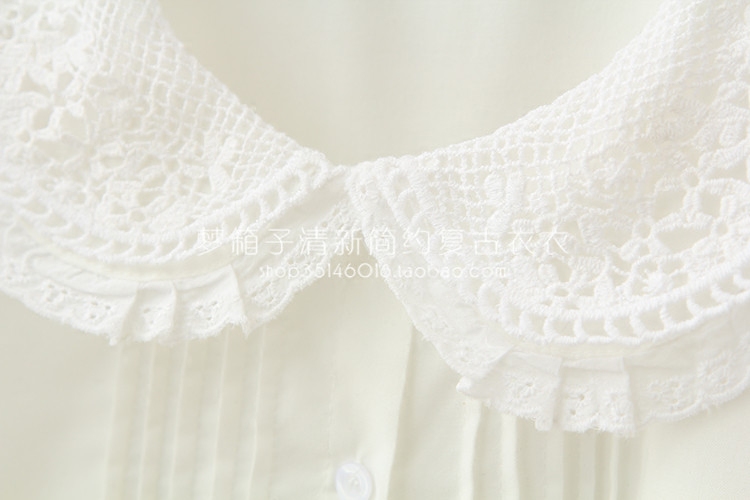 梦箱子2025新款甜美娃娃衫泡泡袖衬衣女蕾丝花边娃娃领宽松白衬衫