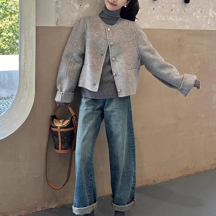 双面羊绒灰色短款呢子大衣女秋冬季2024新款毛呢小个子高级感外套