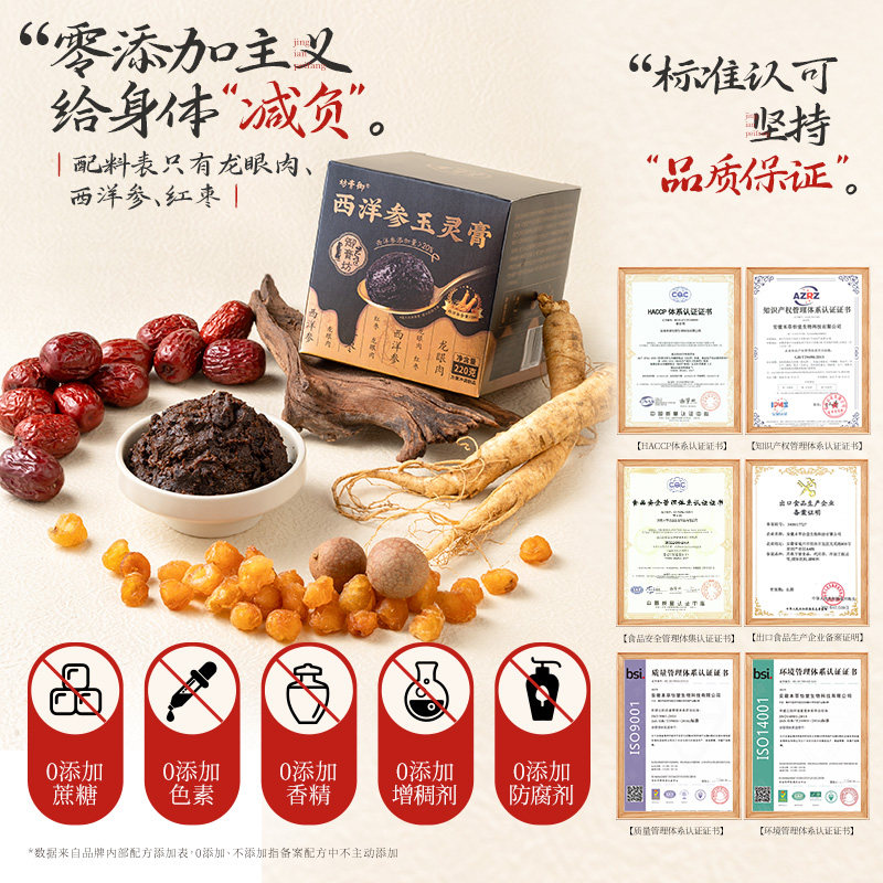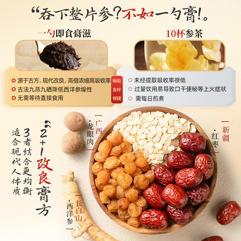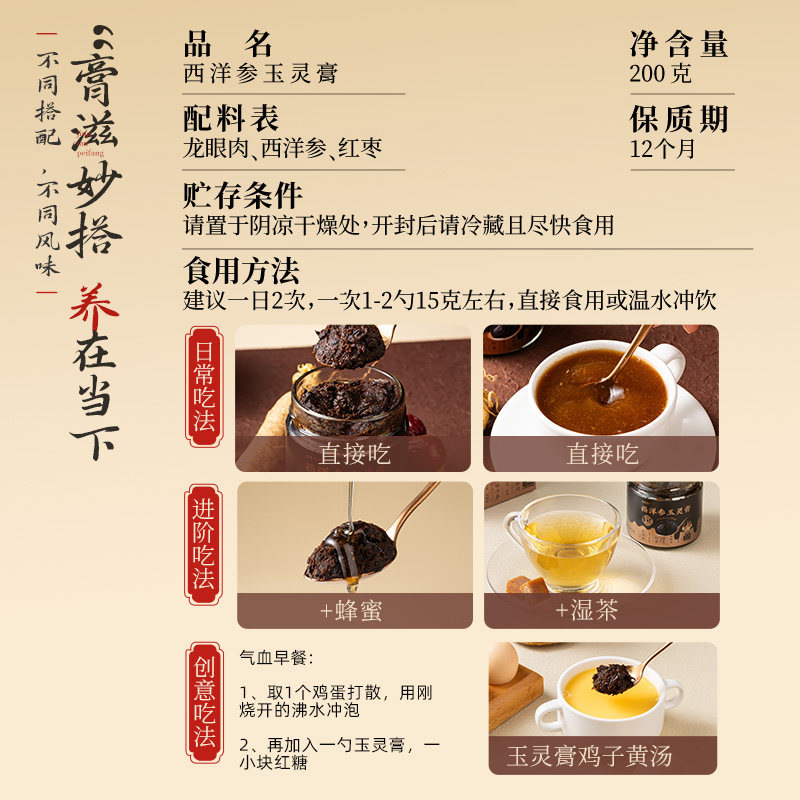 坊膏御西洋参玉灵膏正品女神古法蒸制龙眼肉红枣膏血气中秋送礼