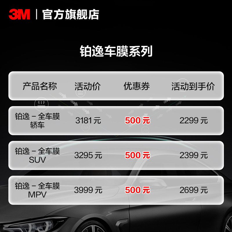 3M汽车贴膜官方旗舰店铂逸全车膜玻璃防爆隔热膜车窗膜防晒太阳膜