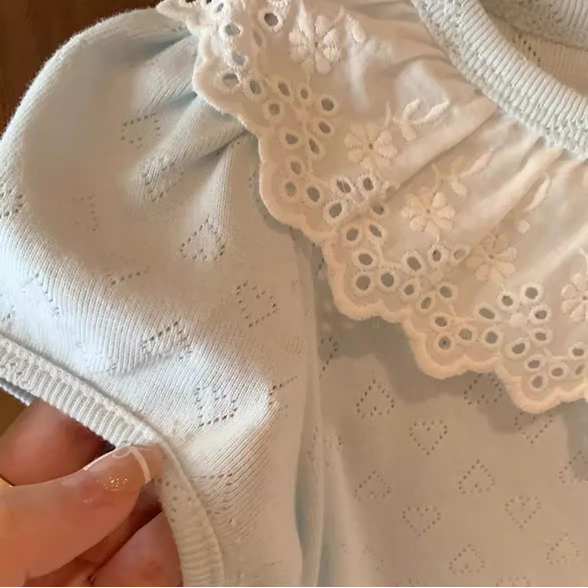 女童蕾丝花边领短袖t恤夏季新款女婴儿童甜美半袖女宝宝纯棉上衣