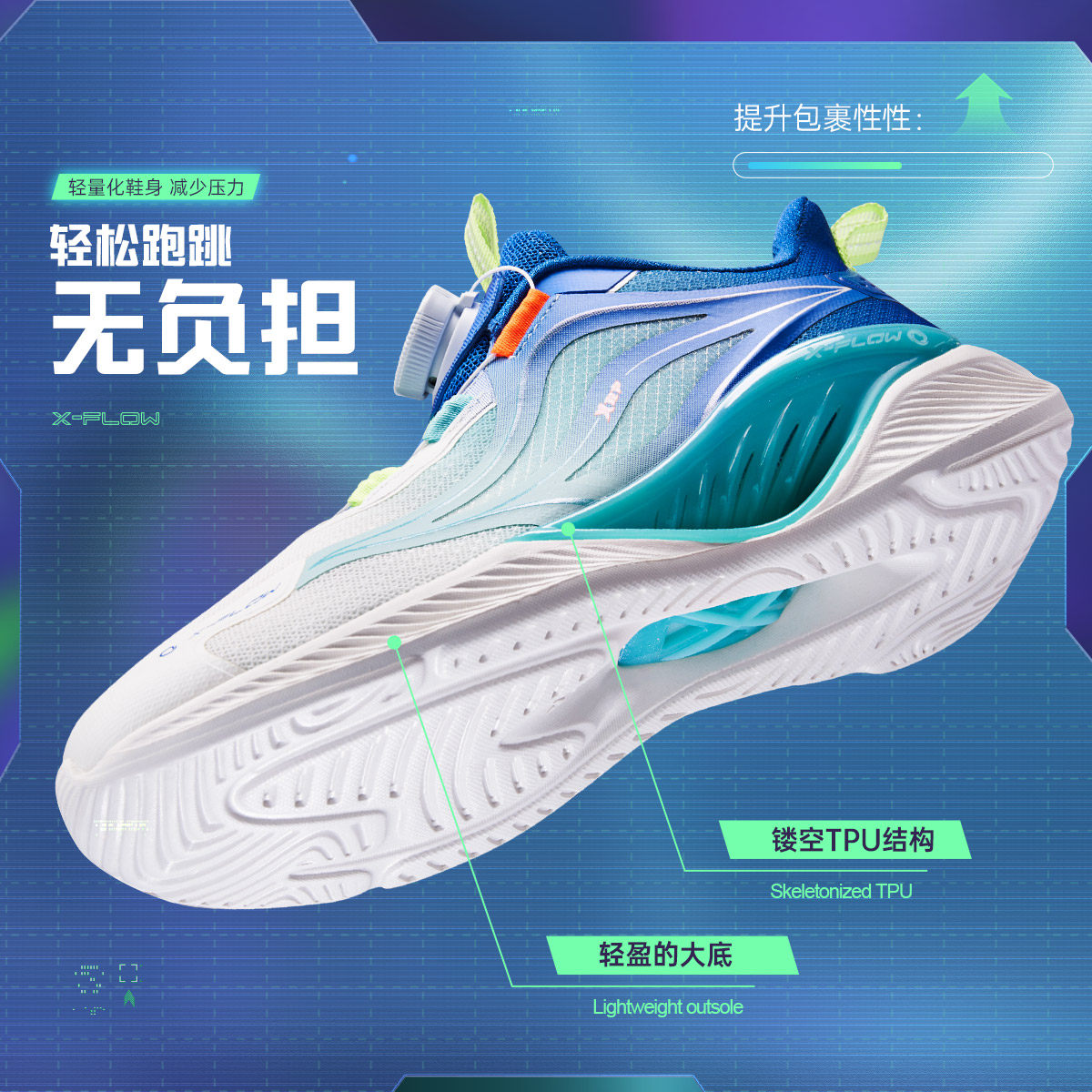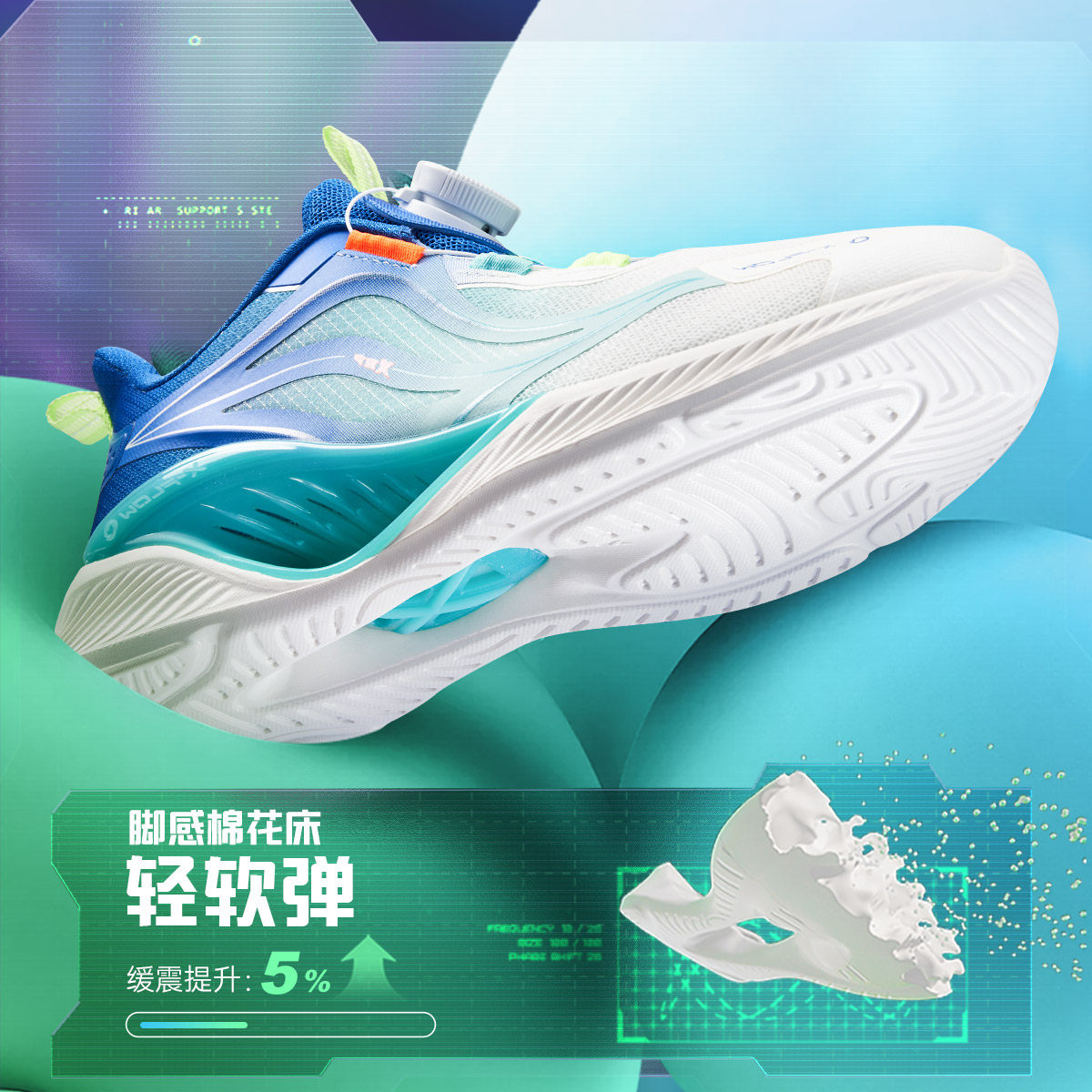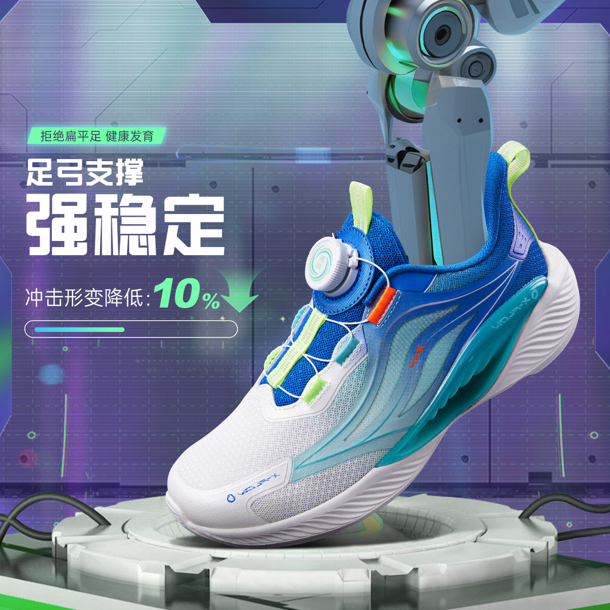 特步童鞋儿童运动鞋男童秋季网面透气旋转纽扣鞋中大童女跑步鞋子